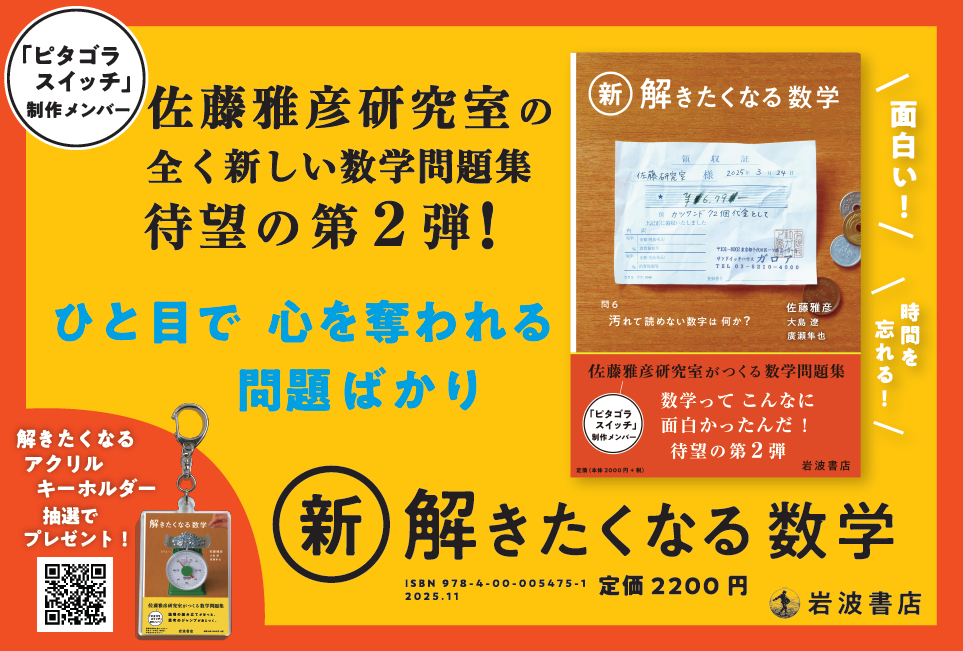 あの「ピタゴラスイッチ」制作メンバーが作り、数学のイメージをくつがえした、画期的な数学問題集『解きたくなる数学』(岩波書店)。15万部のベストセラーになった同書の第2弾が、いよいよ11月18日に発売されます。