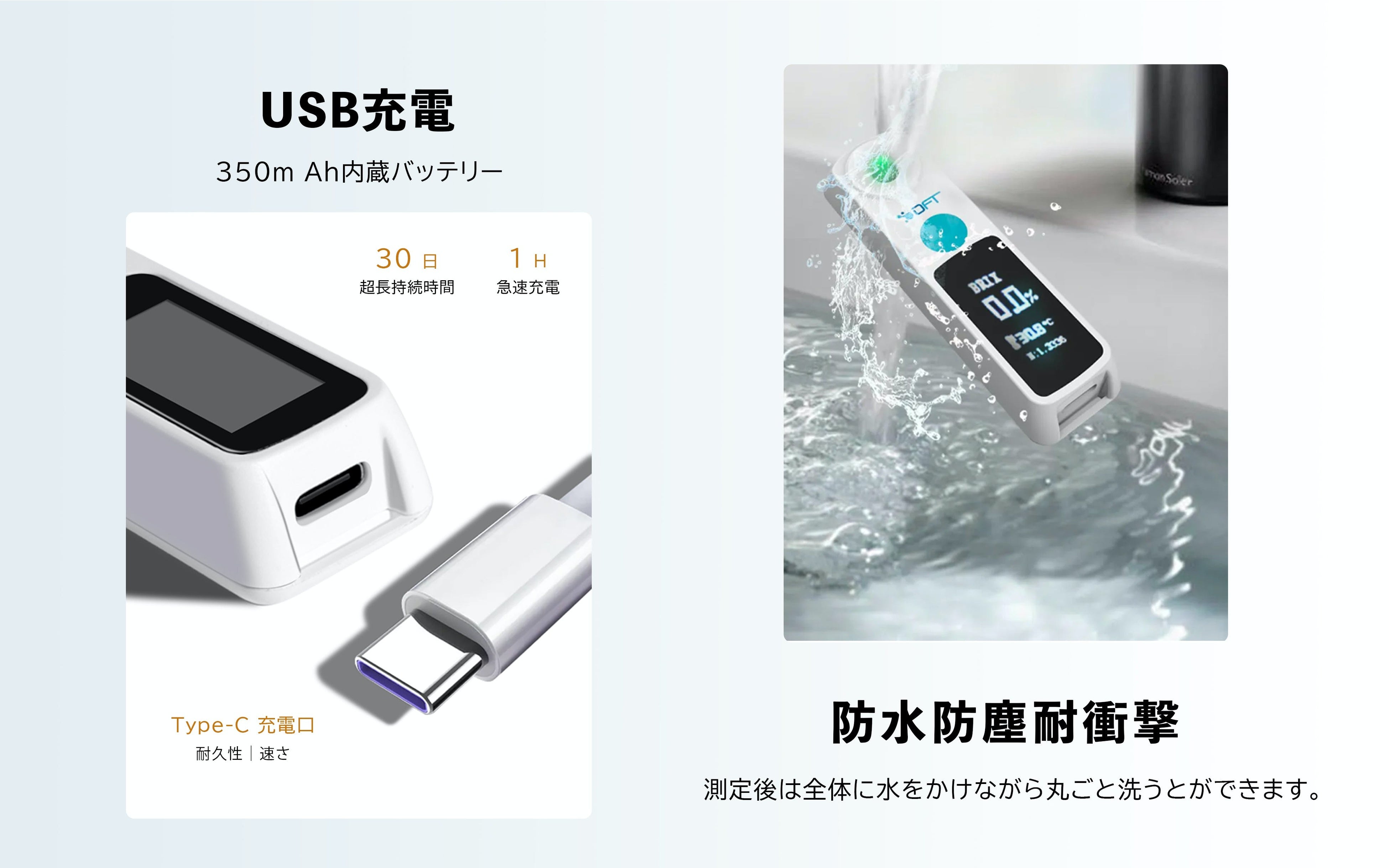しまう事はありません。また、1回の充電で30日間連続使用する事が可能なので充電ミスも防げます。