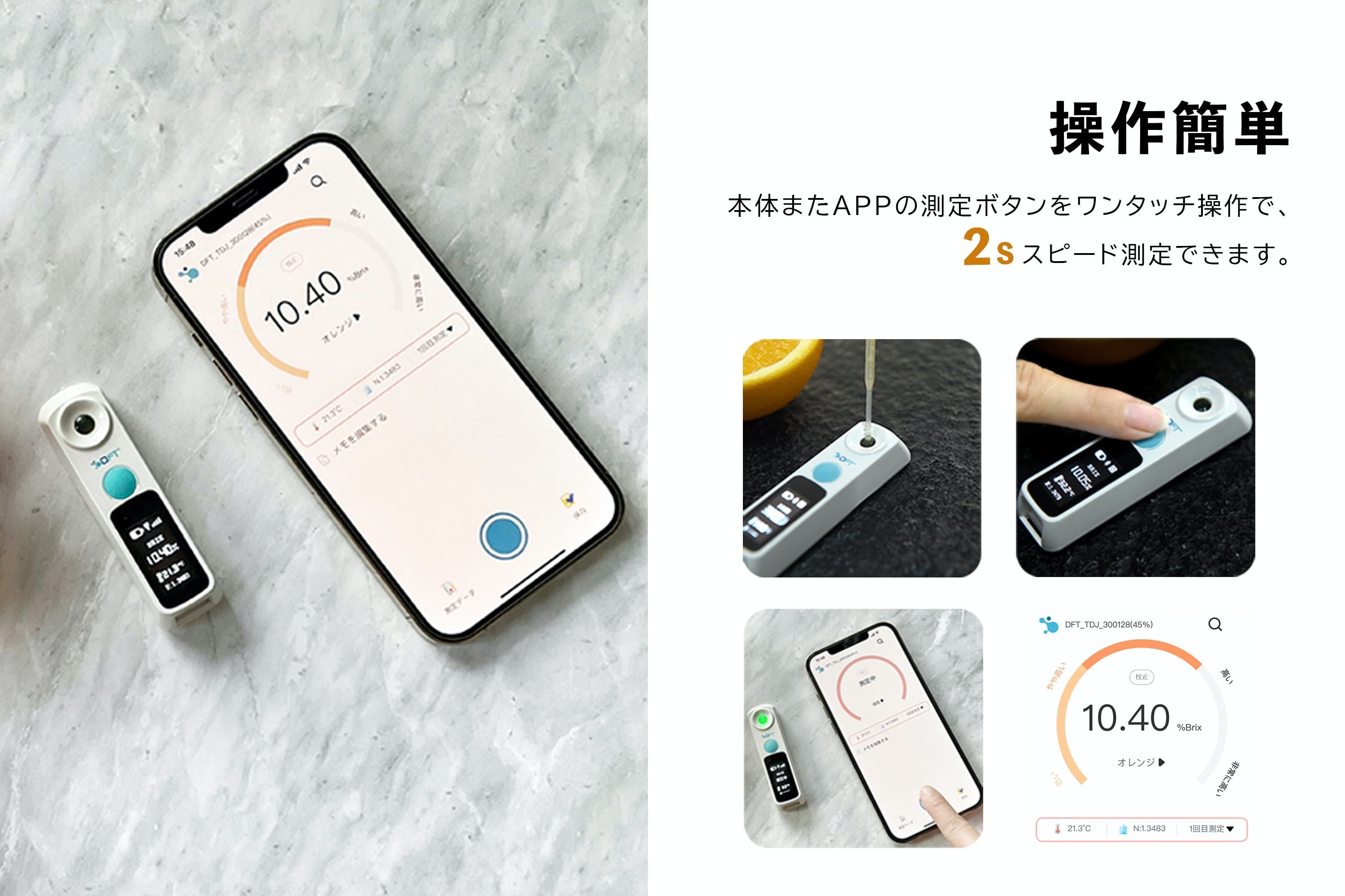 これまでありそうでなかったプロから個人ユーザーまで幅広く利用頂けるスマートフォンアプリ連動型「デジタル屈折式計」。