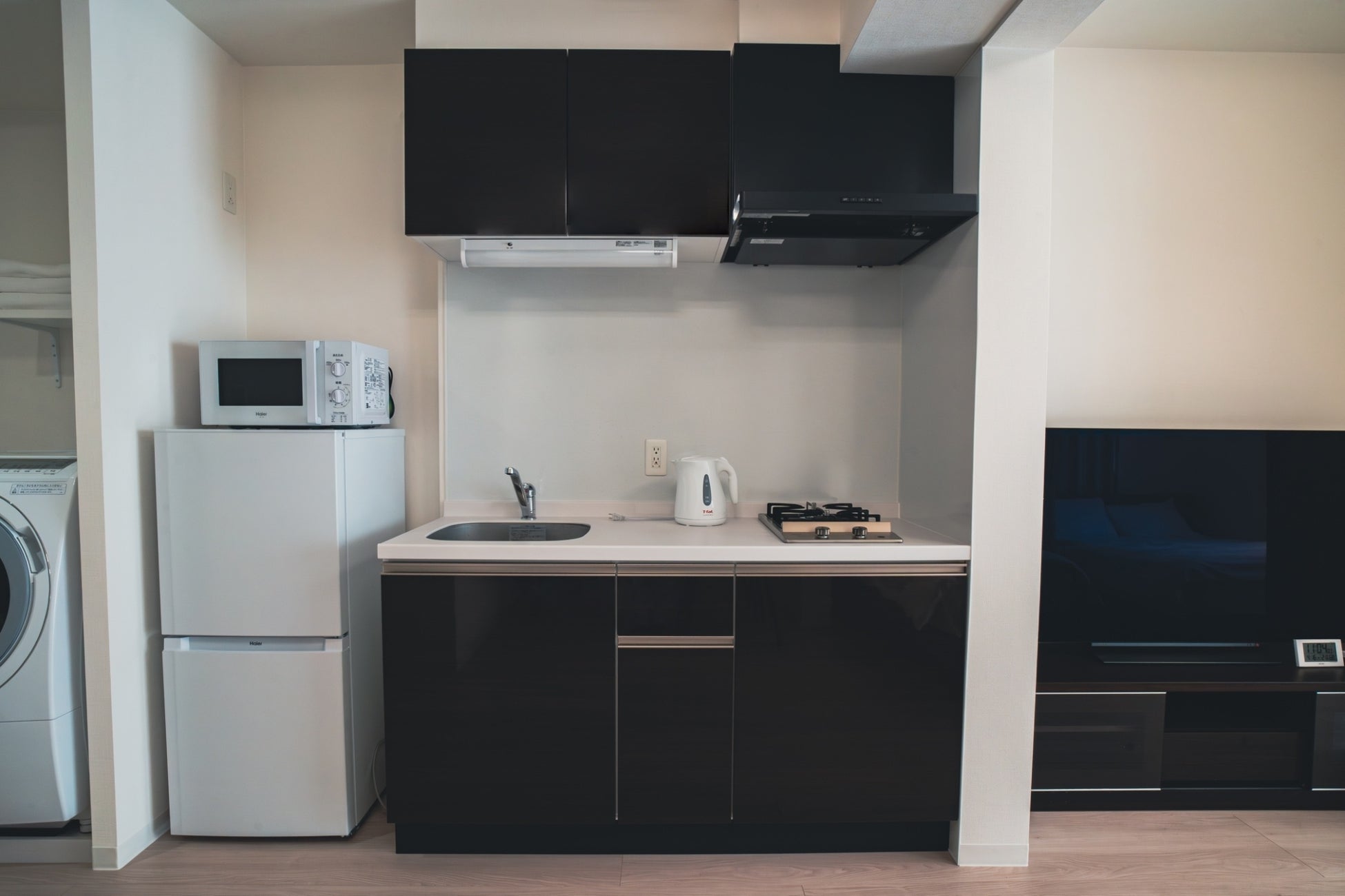 キッチンに調理道具まで完備、自炊もでき長期滞在にも最適