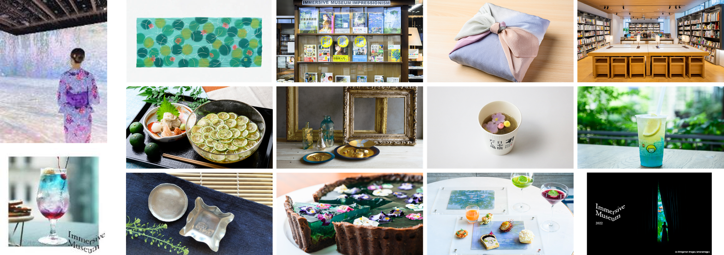日本橋エリアの各店とImmersive Museumがコラボレーション。Immersive Museumで取り上げる印象派の作品群からインスパイアされたオリジナルメニューやアイテムをお楽しみください。