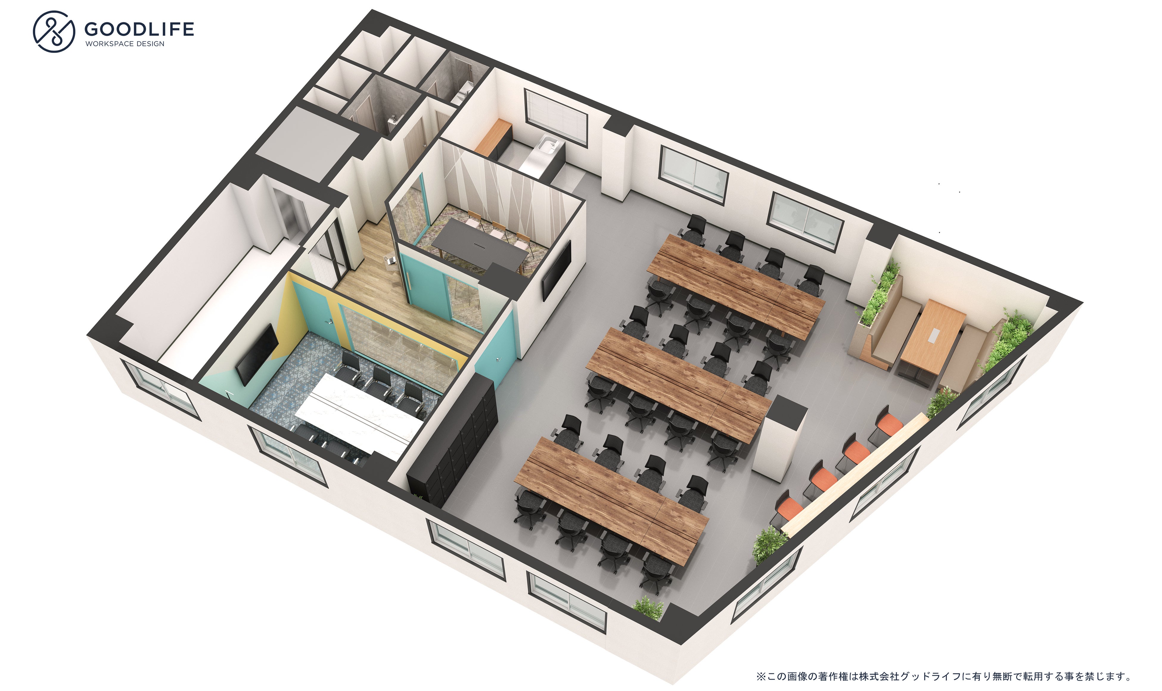 通常の賃貸オフィス仕様に加え、セットアップフロアを用意しました。