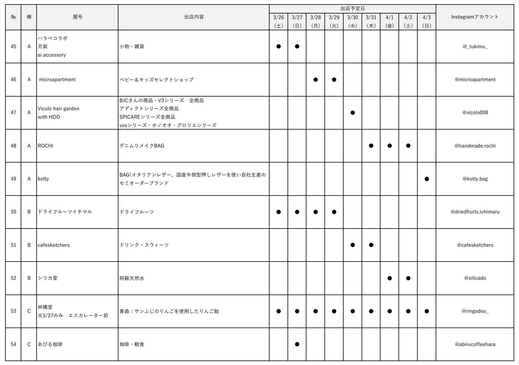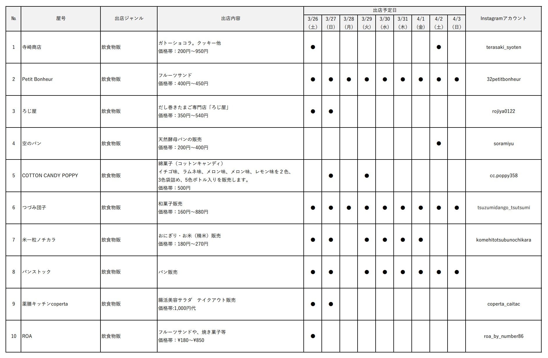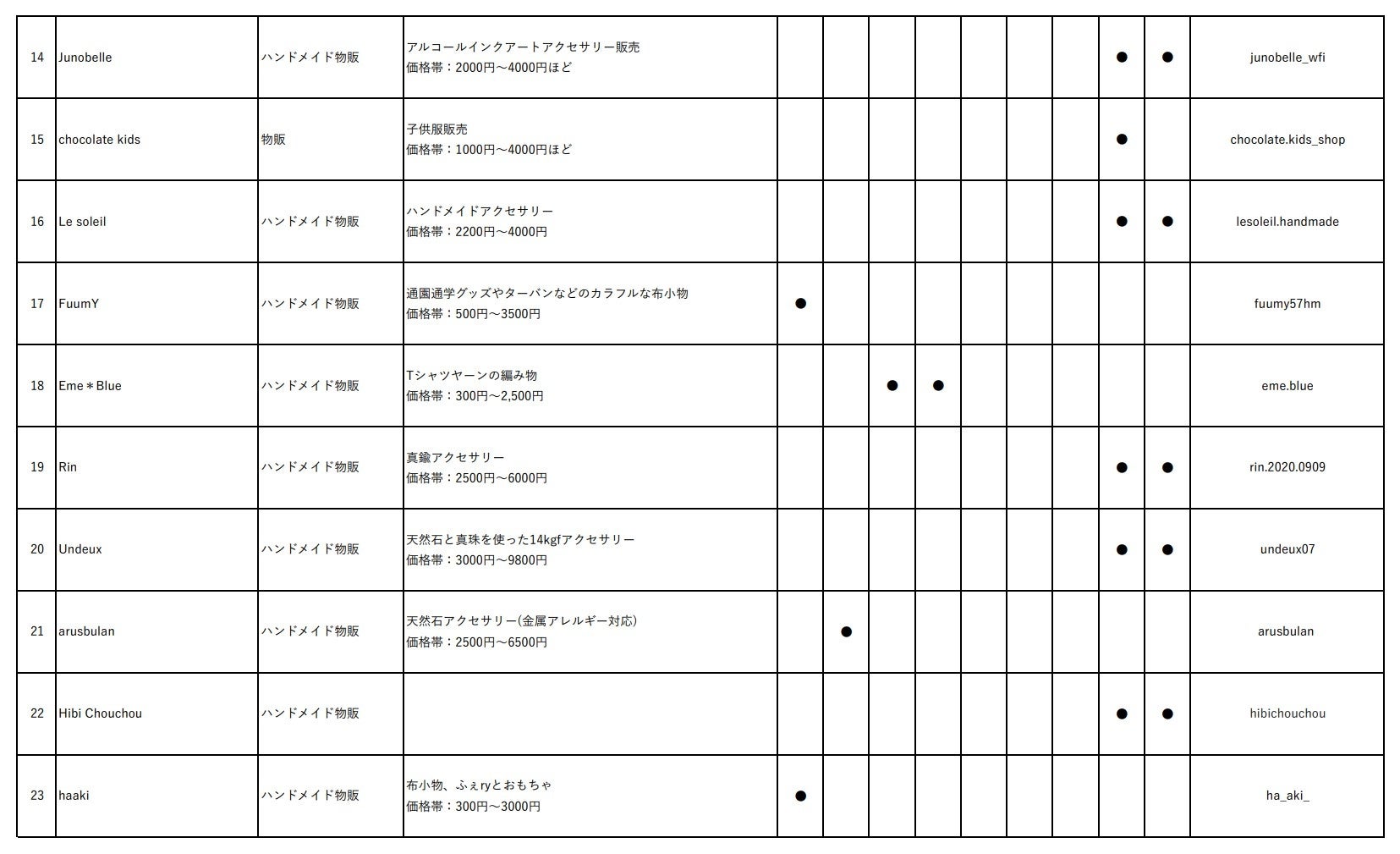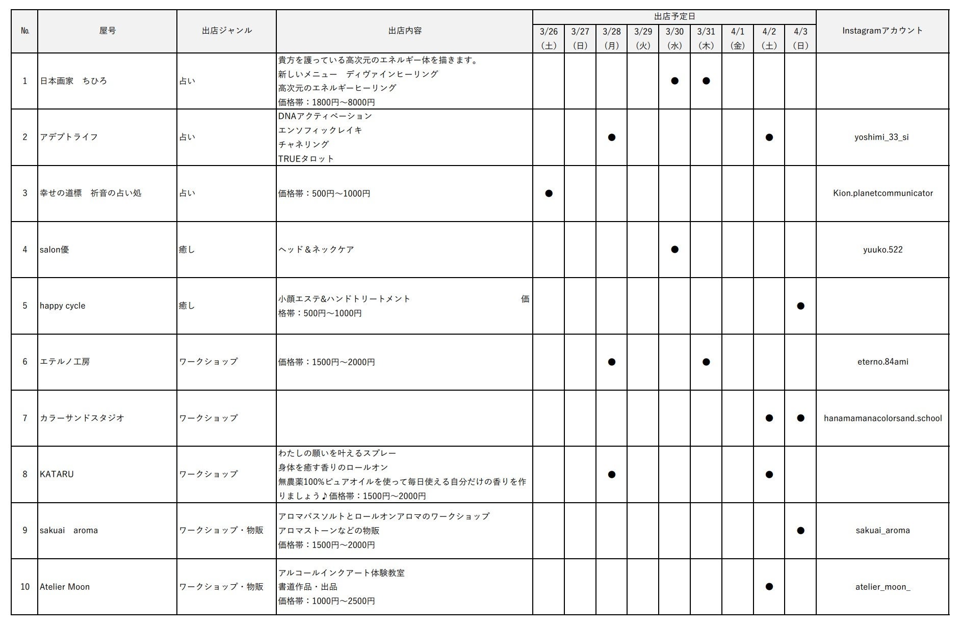 - 【占い・癒し・ワークショップ出店予定一覧】