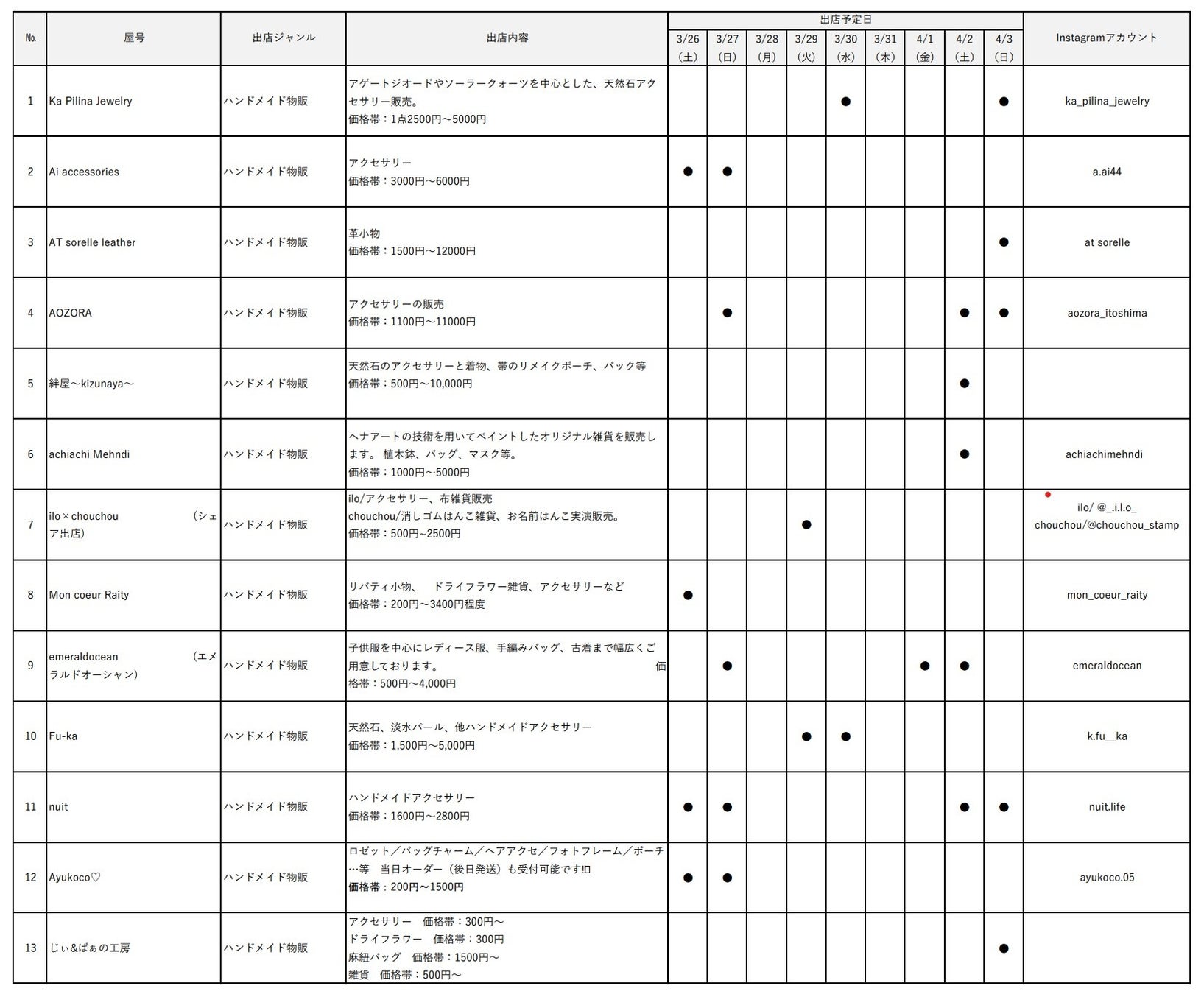 2022年3月26日(土)~2022年4月3日(日) のべ出店数100を超える大規模ハンドメイドマルシェイベントを開催!