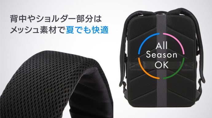 特徴4:丈夫で防水性あり!背中やショルダー部分はメッシュ素材使用で年中快適
