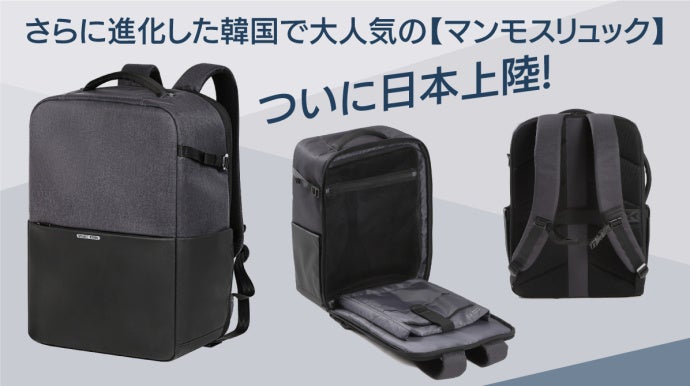 旅行代理店である株式会社EGLOKINAWAの物販事業部が、韓国で話題の「マンモスリュック」第4弾となる最新バージョンを日本で初めて、本日より「Makuake」にて販売を開始致しました。スタイリッシュなデザイン性と機能性を併せ持つバックパックで、出張から普段使いまで大活躍すること間違いなしです。