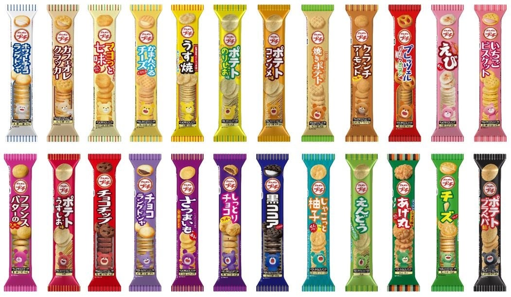 ブルボン「プチシリーズ」は1996年から販売している食べきりサイズ商品で、現在24 種類を基本に展開しています。携帯性が高くどこでも気軽に食べられるほか、ビスケットや米菓、スナックなどバラエティー豊かな品揃えと色どり豊かなパッケージで展開。発売以来人気なシリーズとなっています。また、2011 年 6 月からブルボン「プチシリーズ」に、楽しさ、可愛さをプラスするキャラクターとして“プチクマ”が誕生しました。