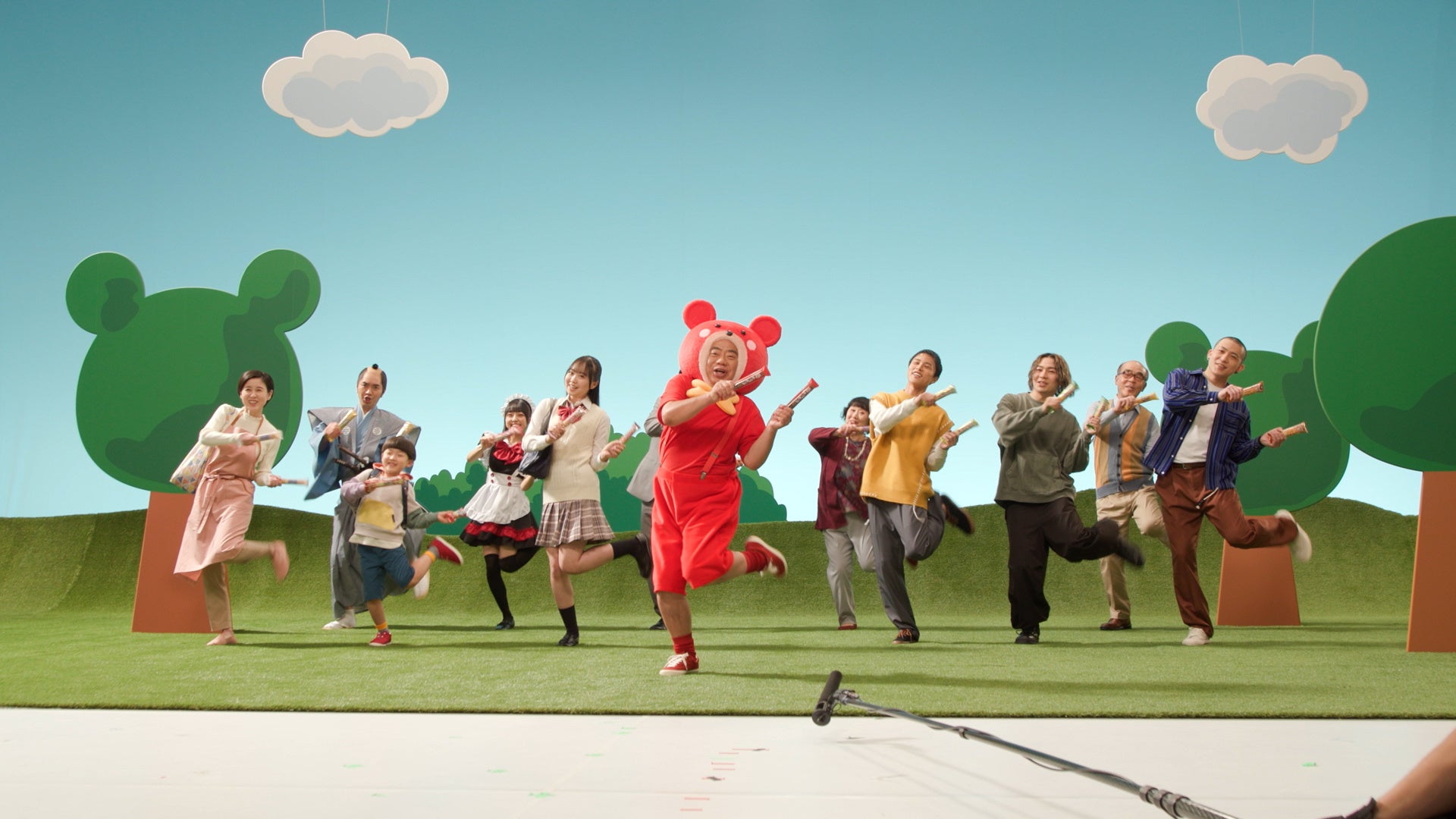 さらにブルボン「プチシリーズ」のキャラクター“プチクマ”の“プチ(赤)”や“コラン(紫)”、TikTok界のダンストレンドメーカー・ローカルカンピオーネのみなさん、女子校生、メイド、侍、サラリーマンが次々に登場し、ポップな雰囲気でブルボン「プチシリーズ」の“ちょうどよさ”をアピールしていきます。最後には全員勢ぞろいで「ちょうどいいよ!」と改めて商品の良さをアピール。全ての人に、気軽にどこでも楽しんでほしいという願いを込めたCMとなっています。
