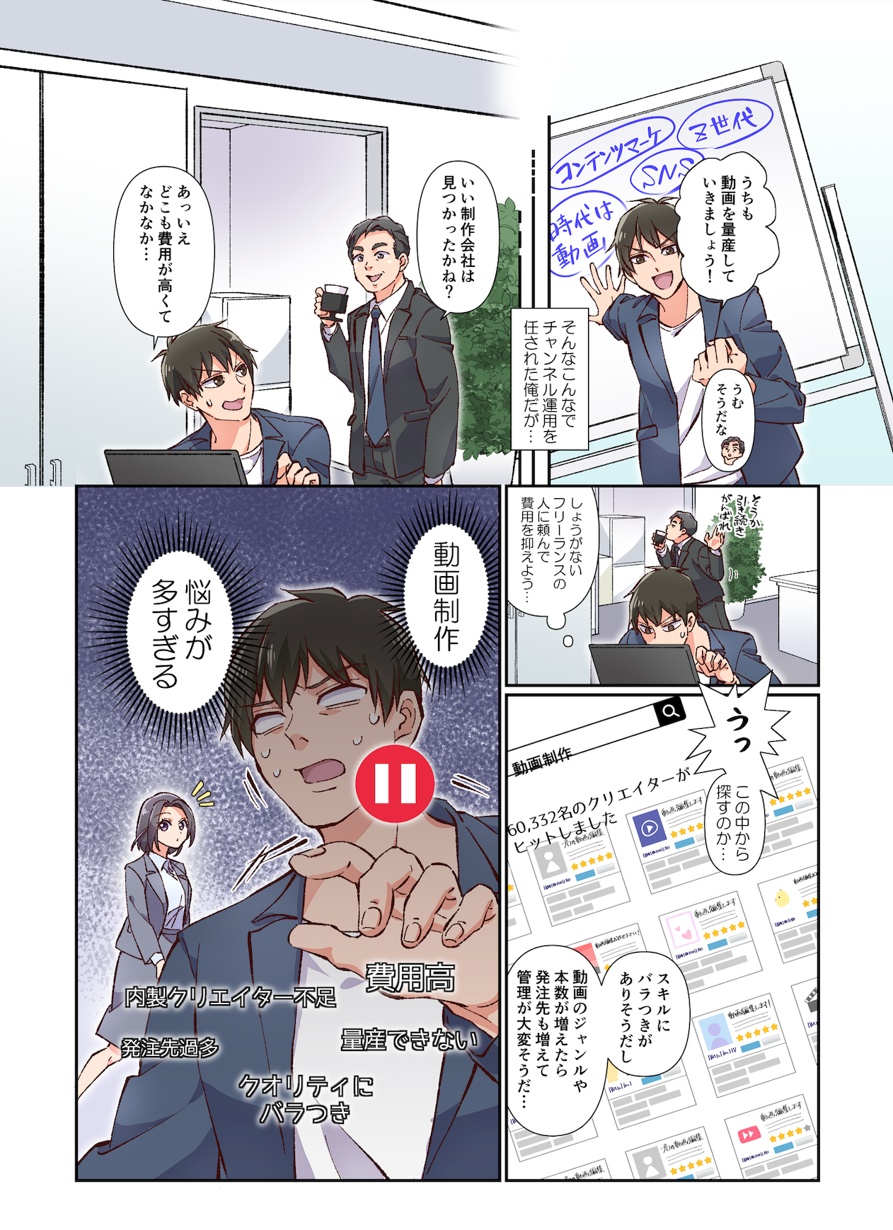 また、マーケティング知見のあるクリエイターやWEBデザイナーなど、動画制作以外のスキルを持ったクリエイターも所属しており、動画マーケティングやWEB制作まで対応可能です。