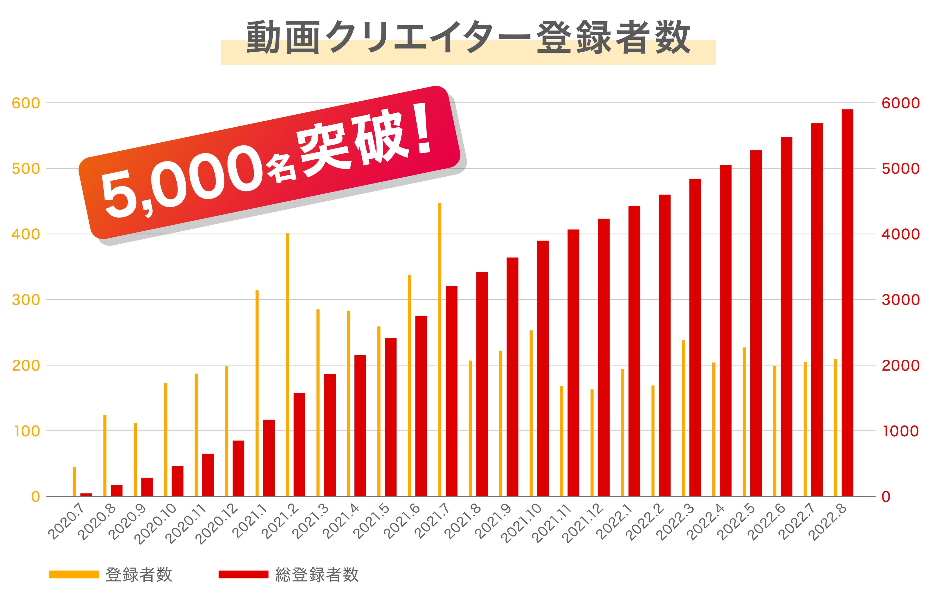 クリエイターエージェンシー「サムジョブ」動画クリエイター登録者数累計5,000名突破!
