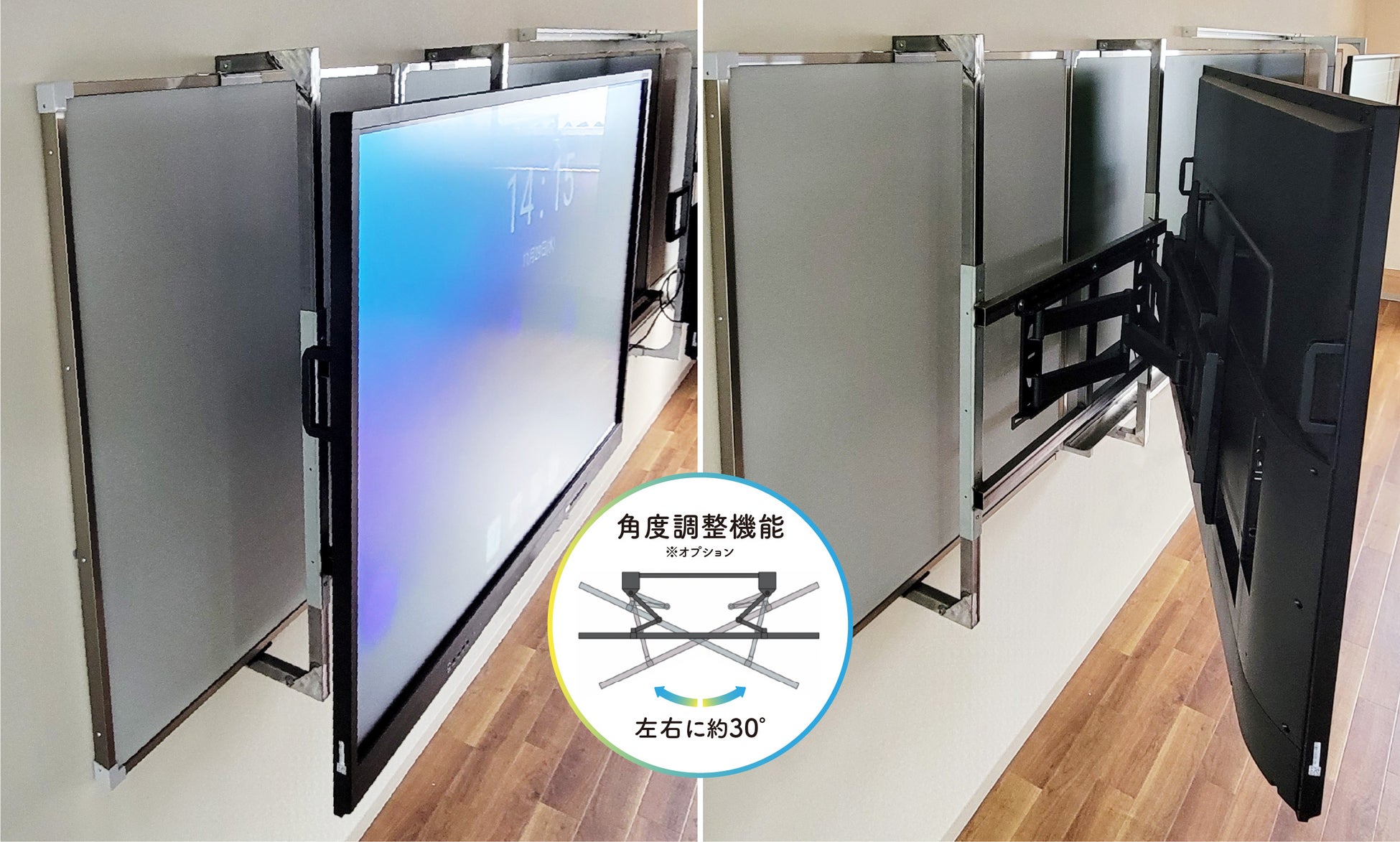 昨今、ICT授業でよく使われている「ディスプレイ型電子黒板」はスタンド設置されることが一般的ですが、日本の教室の狭さや教壇がある関係で設置場所が限定され、教室の前方の左隅に斜めに置かれることが多く、電子黒板から対角の席の児童・生徒が見づらいという問題がありました。