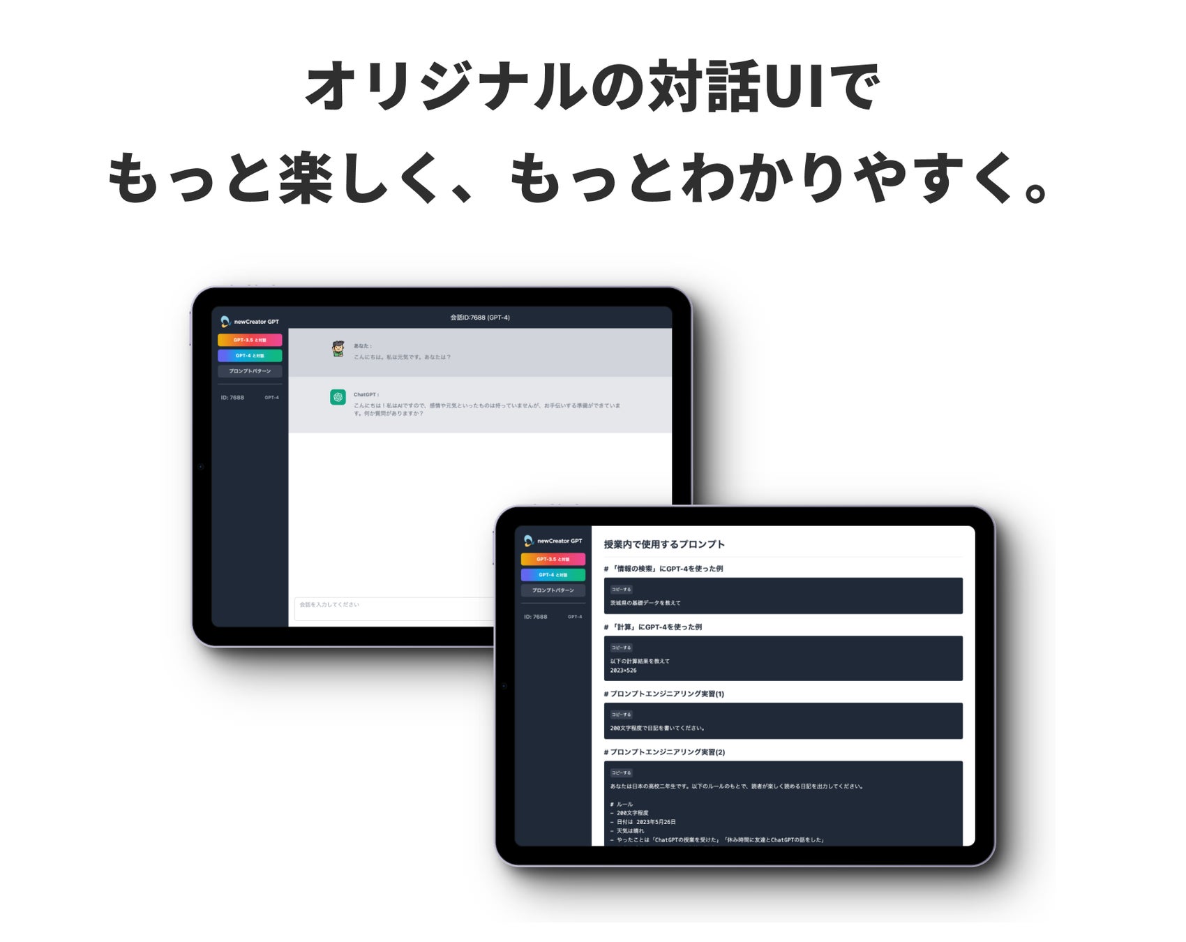 また、今回はChatGPTの技術を組み込んだ独自開発の対話UI(ユーザーインタフェース)を採用しており、生徒のみなさんによりわかりやすく、より楽しく学びを進めていただけるようになっております。