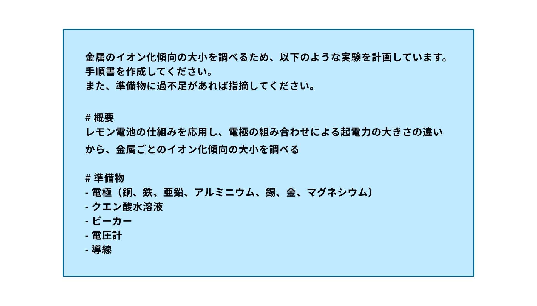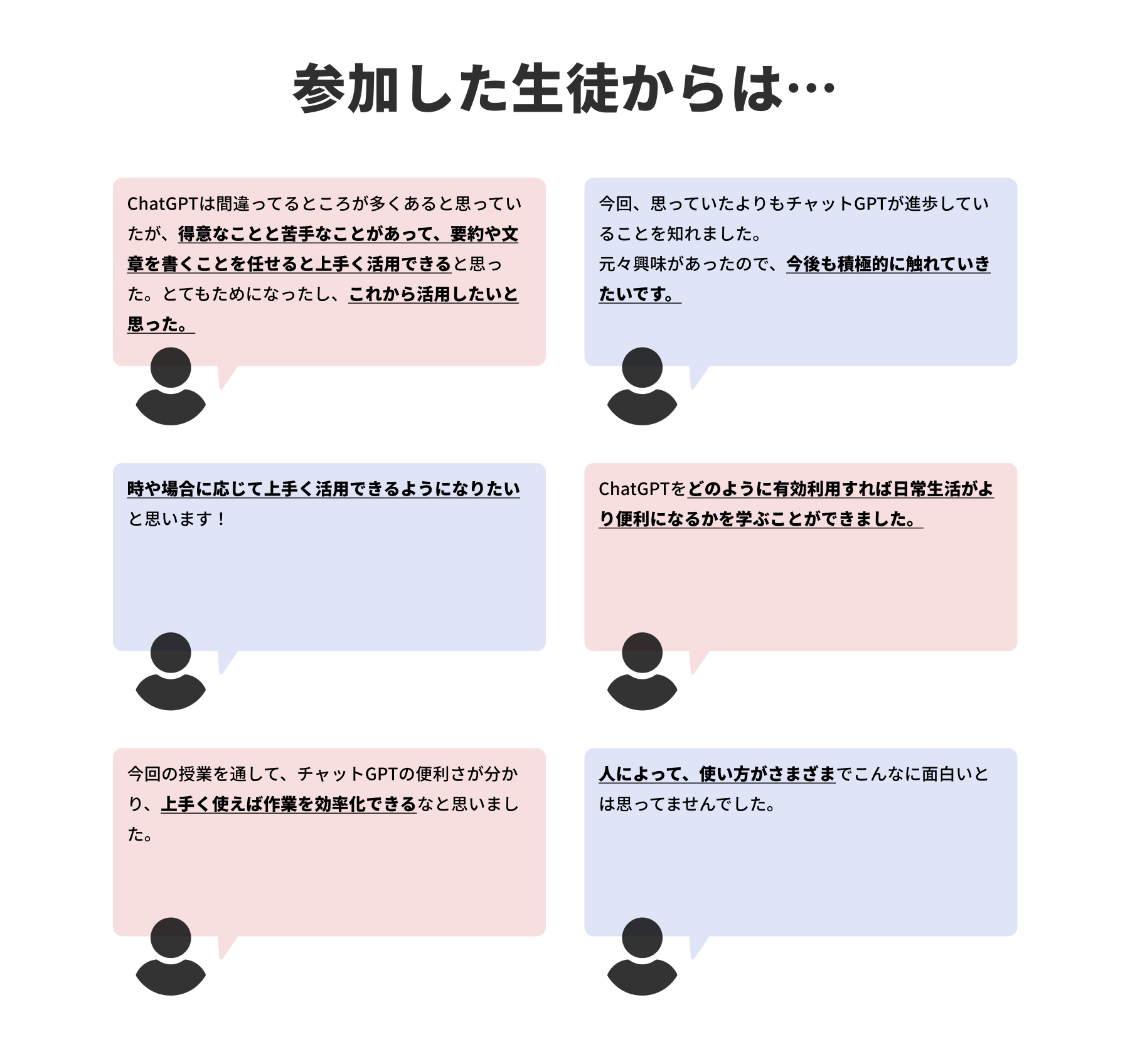 ・規約により12歳以下の生徒はChatGPTを使用することができません。予めご了承ください。