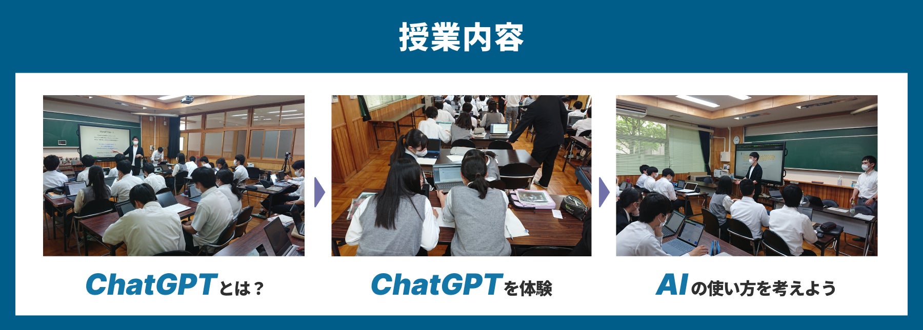 本授業では、講師がChatGPTの利用方法を説明しながら、実際に生徒の皆さんに体験をしていただきます。