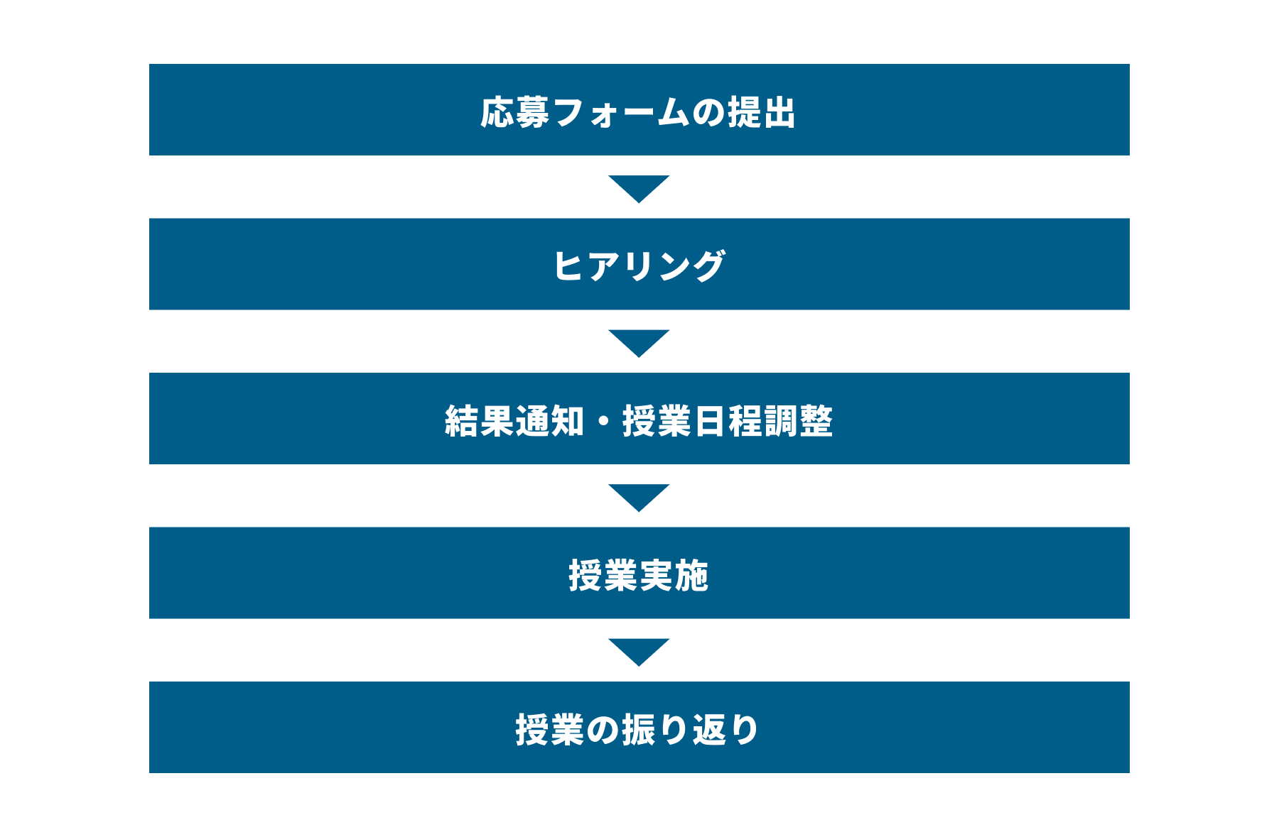 ご担当者様にオンラインで授業の詳細のご説明、実施する環境、不明点や授業の形態についてヒアリングさせていただきます。