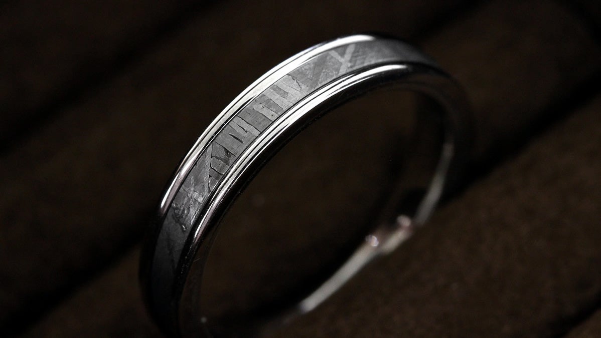 宇宙から飛来したメテオライト(隕石)を使用した特別な指輪。