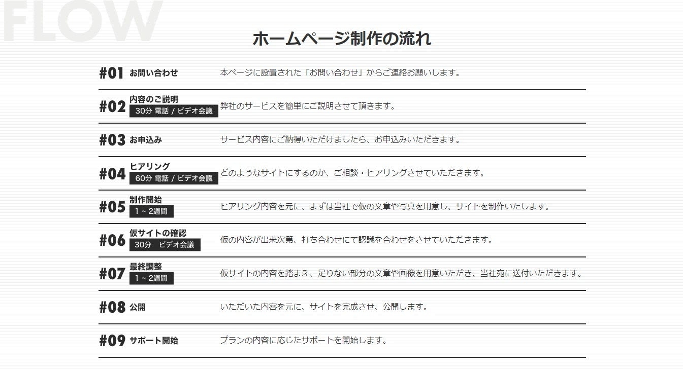 ホームページ制作にハードルの高さを感じている方も、より気軽にお試しいただける内容となっておりますので、ご興味のある方はぜひお問い合わせいただければ幸いです。