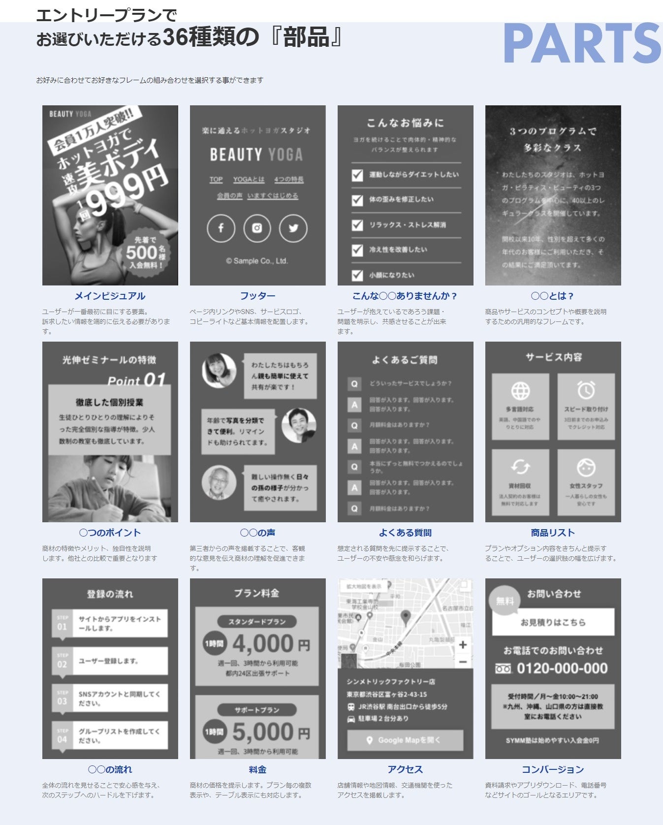 これを受け、従来の「0からじっくりホームページを制作する」フルオーダープランのWEB制作に加えて、過去の制作物を活かした「部品」を組み立てることで、より低価格かつ短納期でホームページ制作を実現できるサービスがあれば、中小企業や個人事業主の方など悩みを抱える方々の課題解決をサポートさせていただけるのではと考えました。