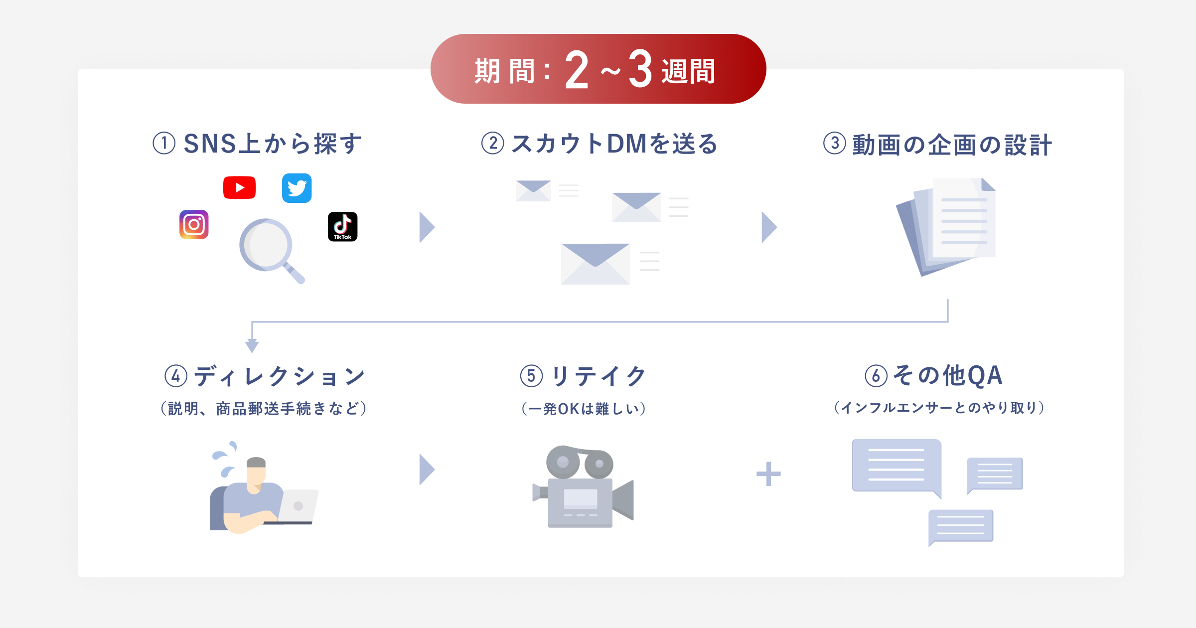 すでにDeLMOに掲載されている動画素材の活用に加え、指定の商品をDeLMO登録クリエイターに郵送し、オリジナル動画を撮影することも可能です。
