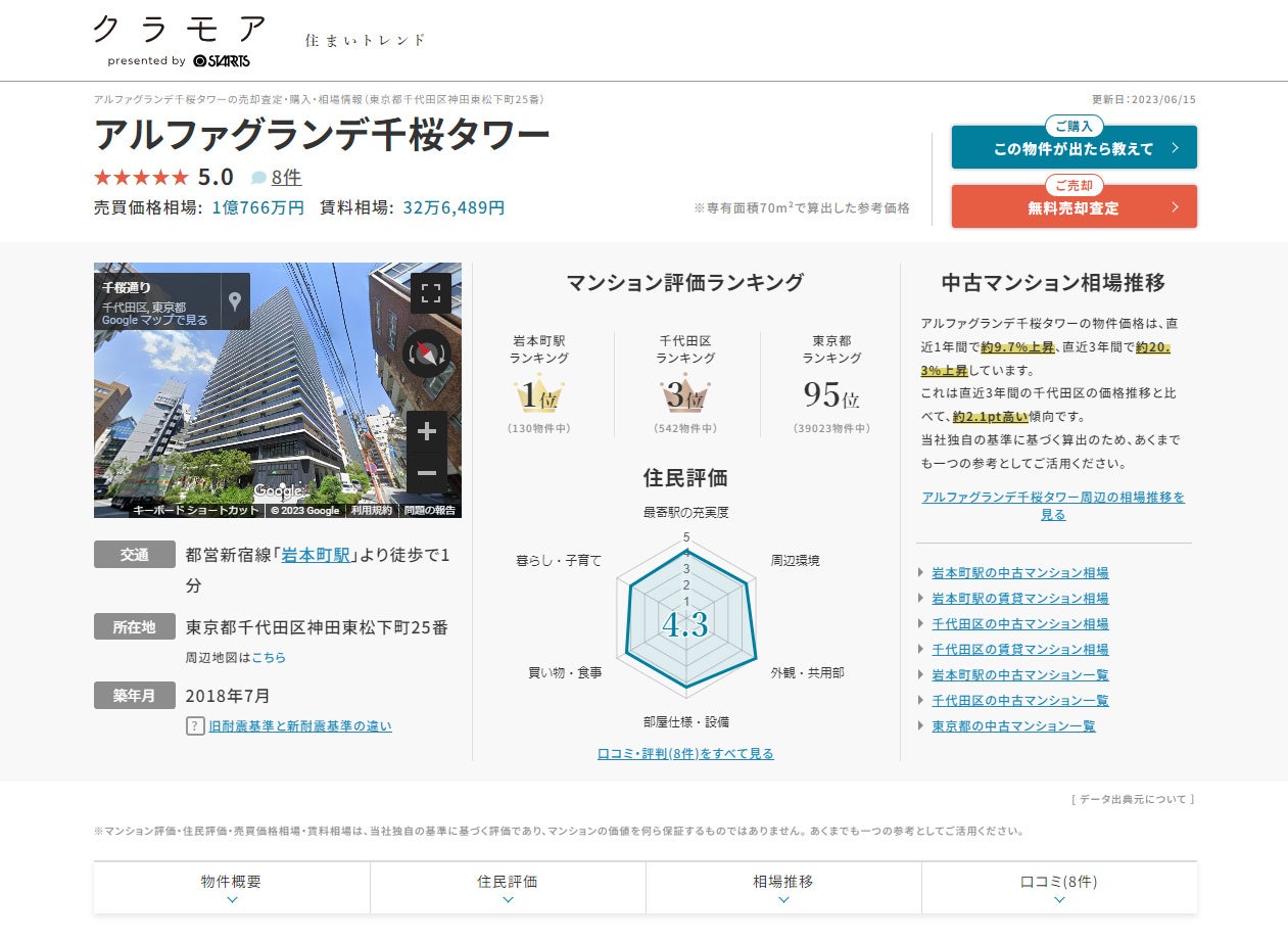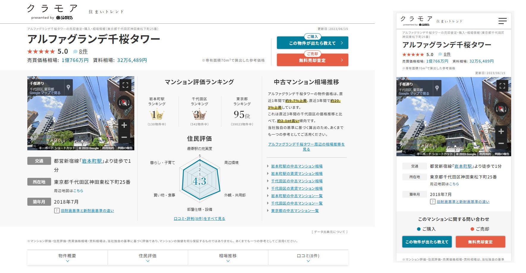 住まい・暮らしに関する情報サイト『クラモア』で、中古マンションの相場価格や住人の口コミが閲覧できる「住まいトレンド」の提供を開始しました。