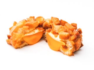 ヘルシーなトマトカレーと半熟卵の相性抜群!ザクザクな触感んも面白いカレーパン。