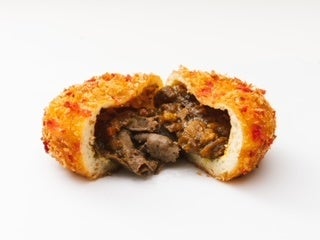 スパイシーな黒カレーと煮込んだ牛すじを合わせたカレーパン。粗めパン粉で、サクサク食感。