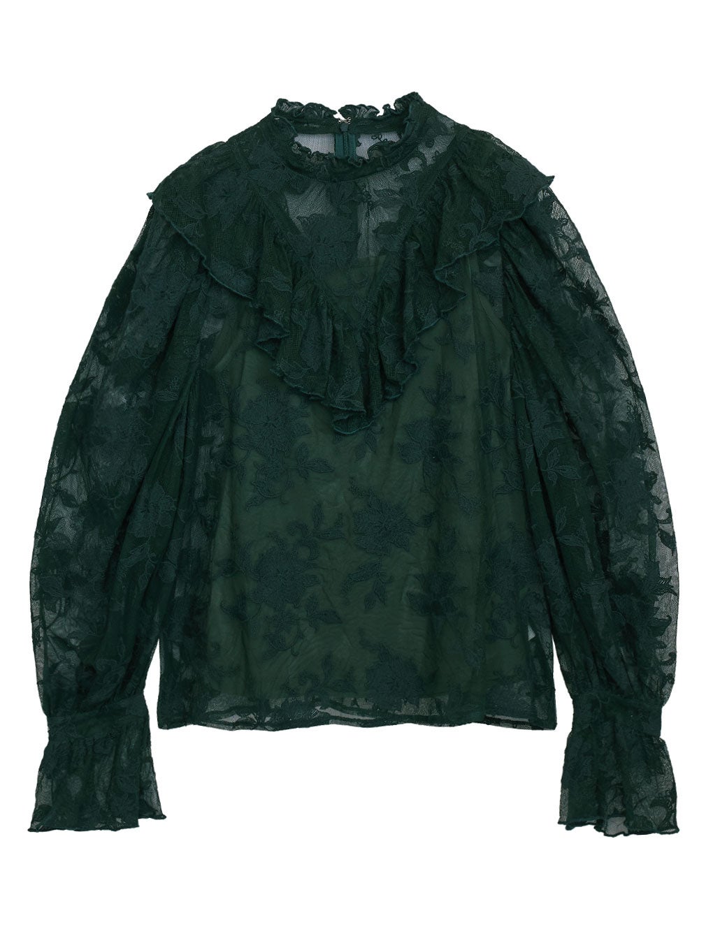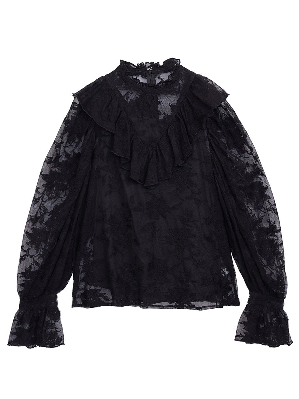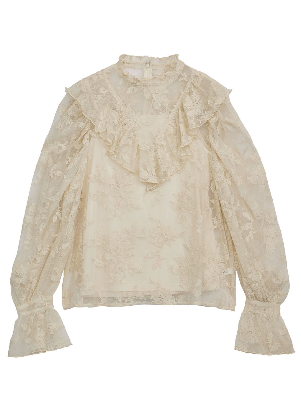 オリジナルの刺繍を全面に施した、チュールブラウス。