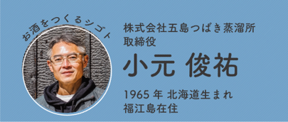 マーケティング業務など幅広く行う。2022年12月、五島列島の福江島に五島つばき蒸留所を立上げ、