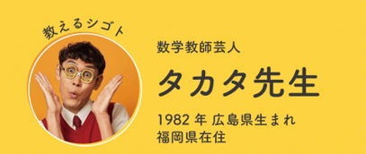 東京学芸大学教育学部卒業。お笑い芸人と数学教授の二刀流で、『算数・数学嫌い』をなくす活動をしている。