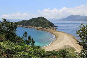 奈留島は、長崎県の西に浮かぶ五島列島を構成する島の一つです。五島列島のほぼ真ん中に位置する奈留島では、海の美しい景色が見られます。世界遺産として登録されている「長崎の教会群とキリスト教関連遺産」の構成資産である江上天主堂があります。また、松任谷由美さんの「瞳を閉じて」の歌でも有名な島です。人口は、約2,000人ほどで、保育園、小学校、中学校、高校はそれぞれ1校ずつしかありません。