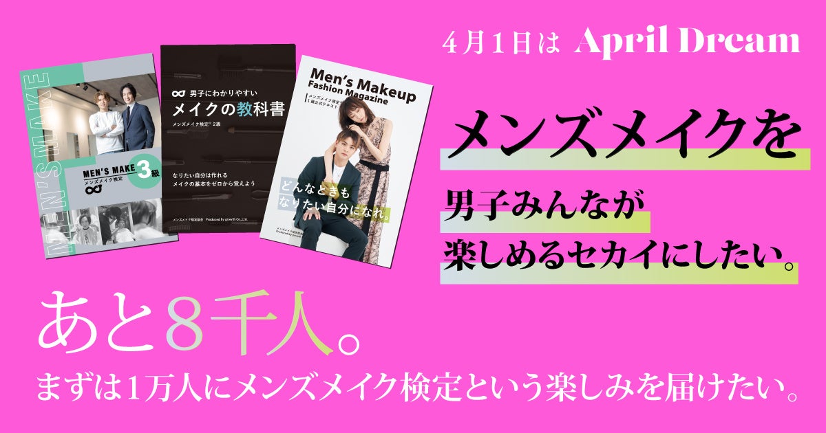 当社は、4月1日を夢を発信する日にしようとするApril Dreamに賛同しています。このプレスリリースは「メンズメイク検定を運営する株式会社growth」の夢です。メンズメイクという文化の定着を日本で目指すための3つのマニフェストを宣言します。
