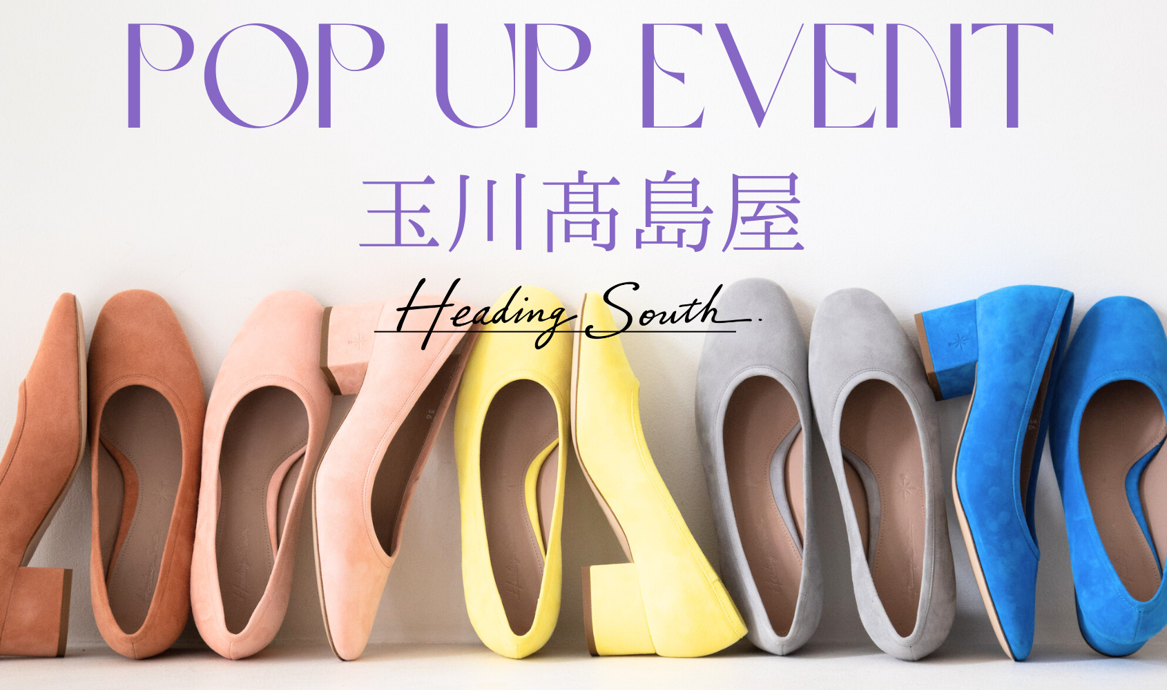 「Heading South」は2023年5月24日(水)から5月30日(火)まで玉川髙島屋本館にてポップアップイベントを開催いたします。このイベントでは、イタリアでつくる、素足でも痛くないパンプス「The Soft Pump(ザ・ソフト・パンプ)」をご試着、ご購入いただけます。フィッティングアドバイザーが採寸のうえ、お客様に合うサイズやコーディネートをご提案いたします。普段は銀座ストア、またはオンラインストアでのご試着・ご購入が可能ですが、多くの方々にThe Soft Pumpの良さを体感していただきたいという願いから、3月の大阪タカシマヤ、4月の日本橋髙島屋に続き、第3弾となるポップアップイベントを玉川髙島屋にて開催いたします。また、通常はオーダー対応のカラーやサイズもご用意しておりますので、この機会にぜひご利用ください。