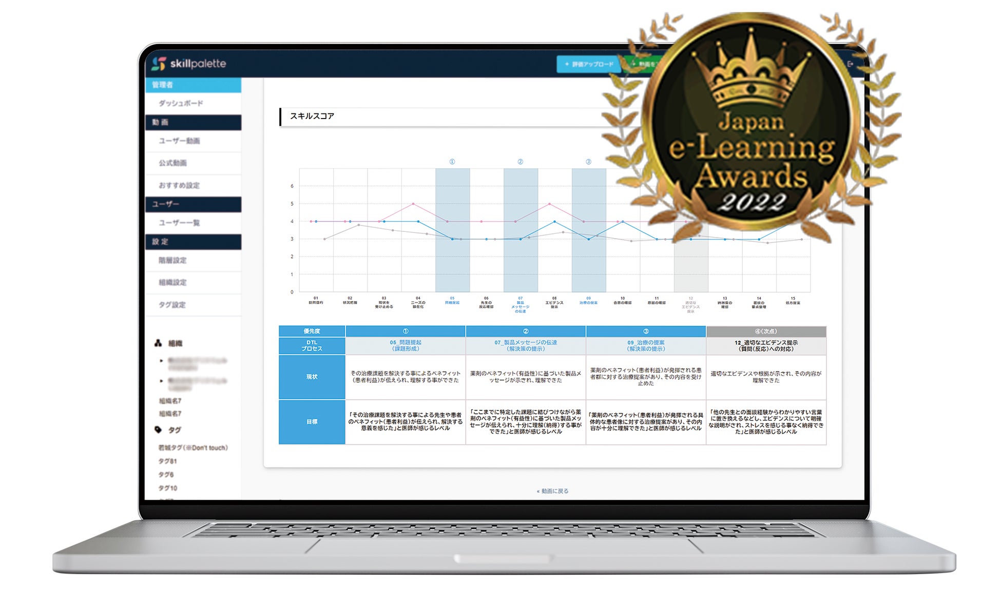 そこでリープは、スキル評価指標「Rubrica」や、対話分析に関するシステムを独自開発。マネージャー層(上司)のコーチングにおけるプロセスや技術など対話による指導力、部下の学習支援における到達度を可視化。客観的に評価(スコアリング)することを可能にした。