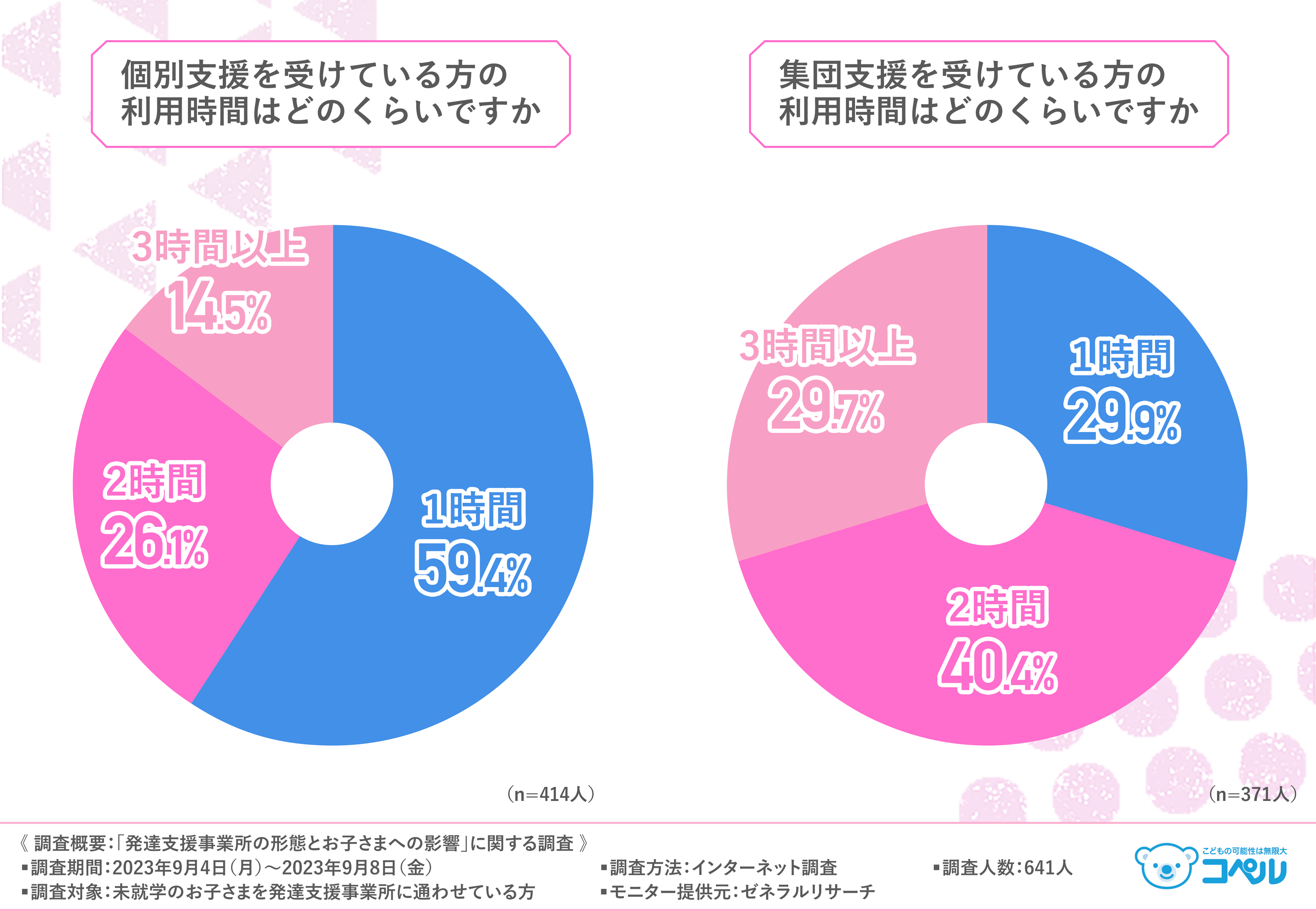 続いて、個別支援を受けている方と集団支援を受けている方に利用時間を伺ったところ、結果は以下のようになりました。