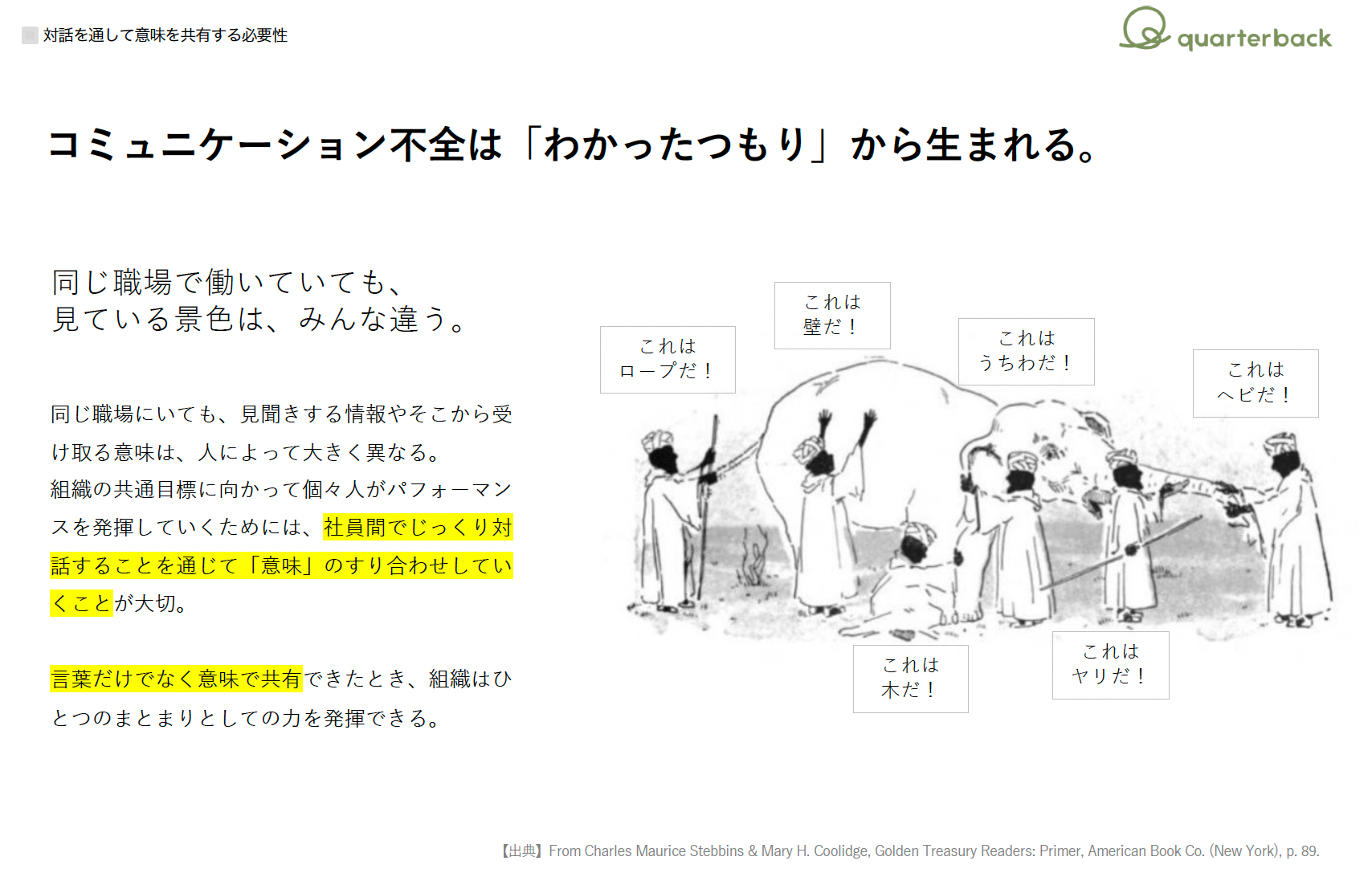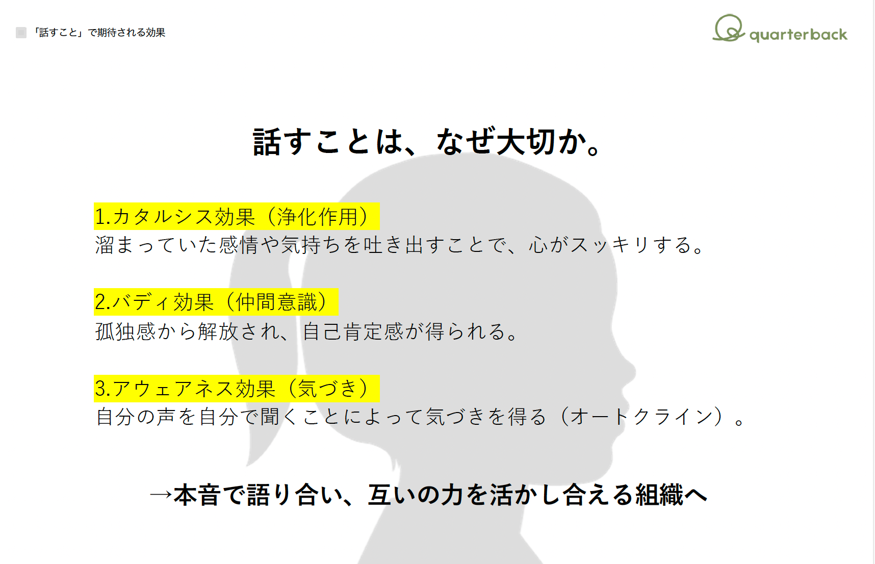 株式会社クオーターバックは、組織内のコミュニケーションを促進するプログラムを企業さま向けに提供します。