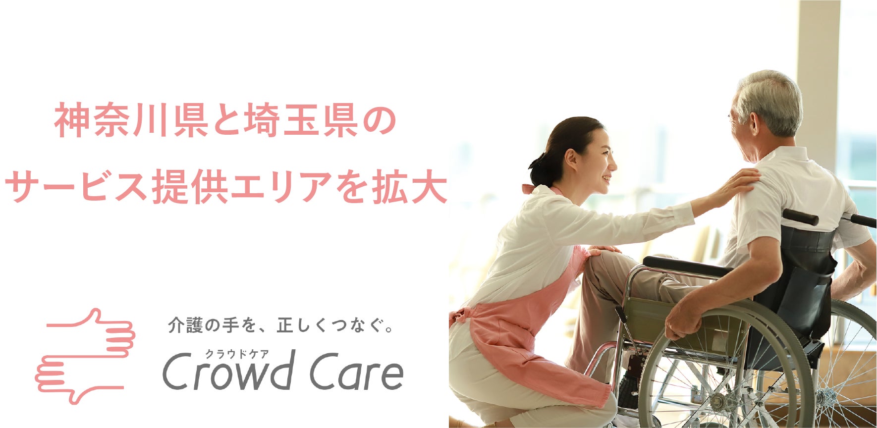 ネットで簡単に頼める訪問介護・家事・生活支援サービス「Crowd Care(クラウドケア)」を運営する株式会社クラウドケア(本社:東京都渋谷区、代表取締役CEO:小嶋潤一)は、この度、神奈川県と埼玉県におけるサービス提供地域を拡大いたしました。