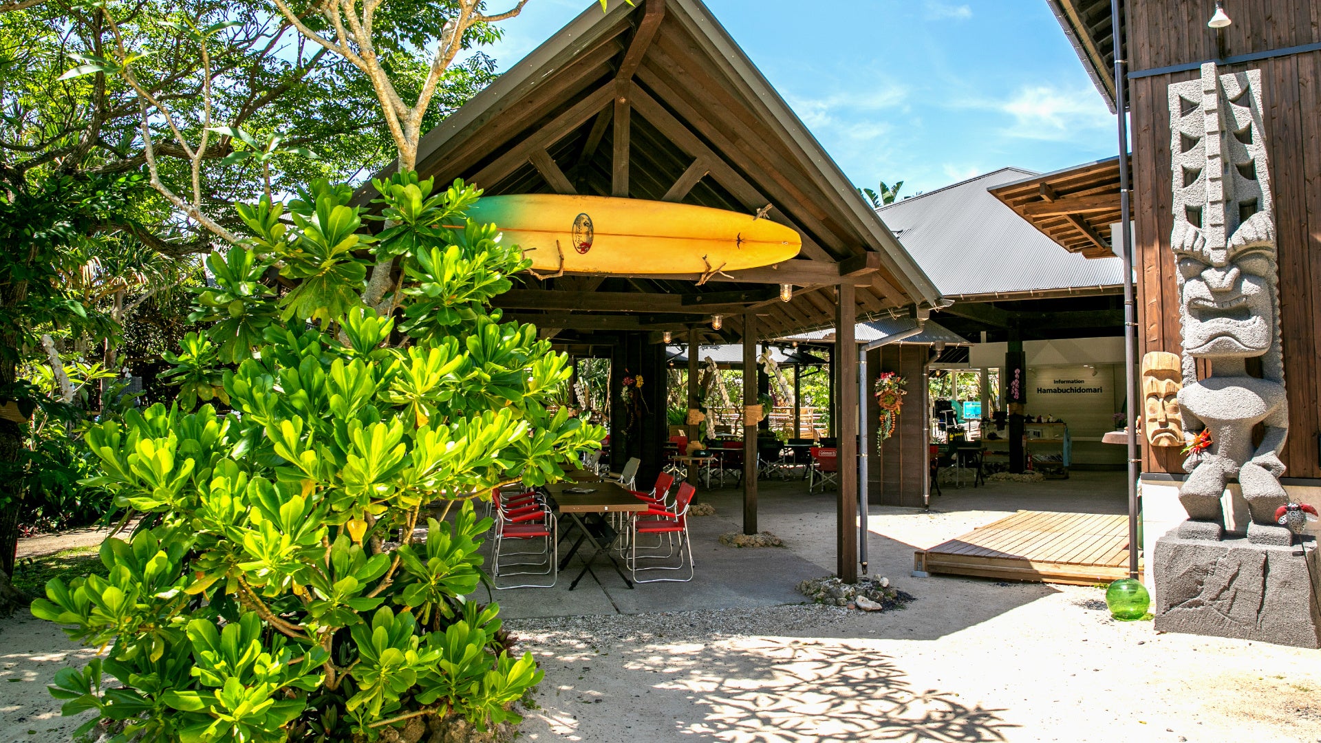 妖怪「ケンムン」が棲むといわれるシンボルツリー・ガジュマルに優しく包まれる、オープンエアレストラン。さざ波のBGMとともに、お愉しみいただける季節の魚介やお肉をBBQスタイルで味わうコース料理「ハマブチジュウリ(浜辺の料理)」の他、ハンバーガーやステーキ、鶏飯やヤギカレー等の島料理、定番スナックなど各種アラカルトメニューを提供いたします。