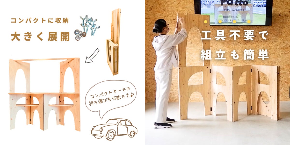 忍野スパークチームと老津木工が共同で震災復興支援プロジェクトを展開!出張輪島朝市開催に伴い組立式ヤタイPattoの無料貸し出しを開始いたします。