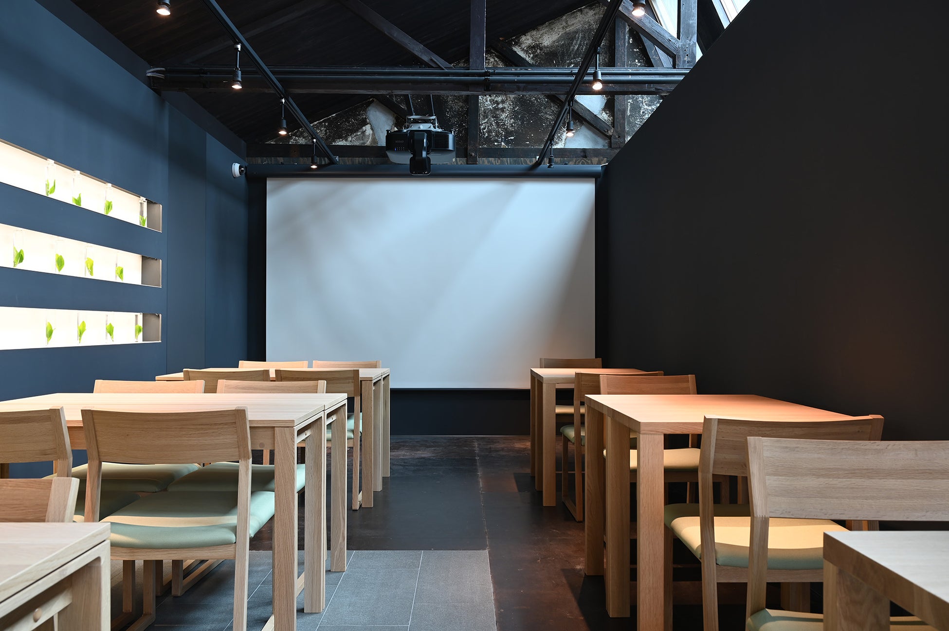 ・ほうじ茶の焙煎工程をガラス越しの見学や新茶のハーバリウムを約300本展示、大型スクリーンでお茶に関しての映像上映など、ゆっくりとくつろいでいただけるサロンスペース