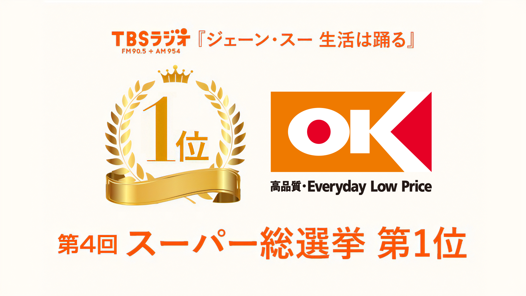 TBSラジオ『ジェーン・スー 生活は踊る』「第4回スーパー総選挙」において、オーケーが4年連続の1位となりました