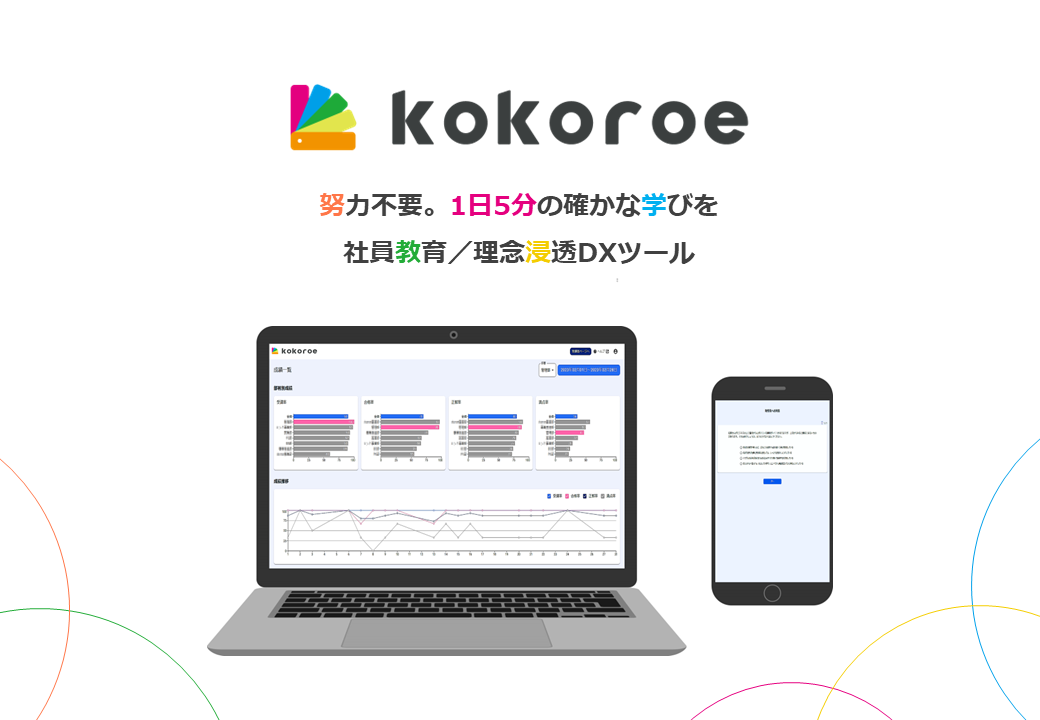 従来、理念や知識の理解度を測定することは困難でしたが、全てをテスト化することで理解度を定量化させ数字で示すことが可能になり、組織における知識量の見える化を実現できるようになりました。これにより、組織における課題の発見から解決までをkokoroeというツールで全て行えるようにしております。