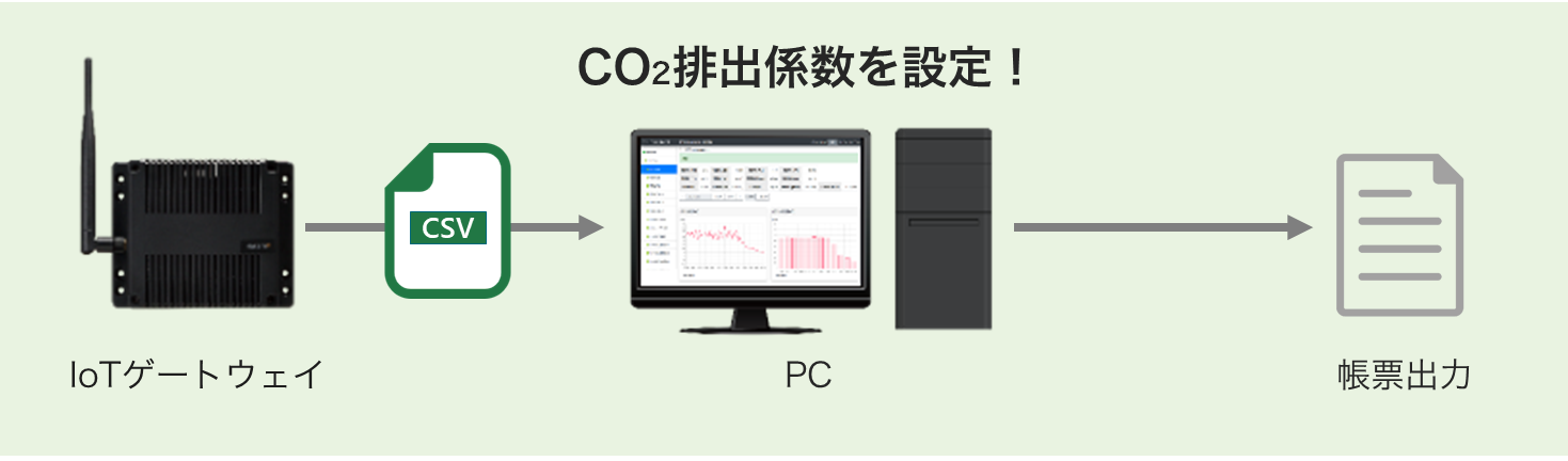 ・LoRa無線機で収集した電力量データにCO2換算係数を設定するだけで一発出力可能!