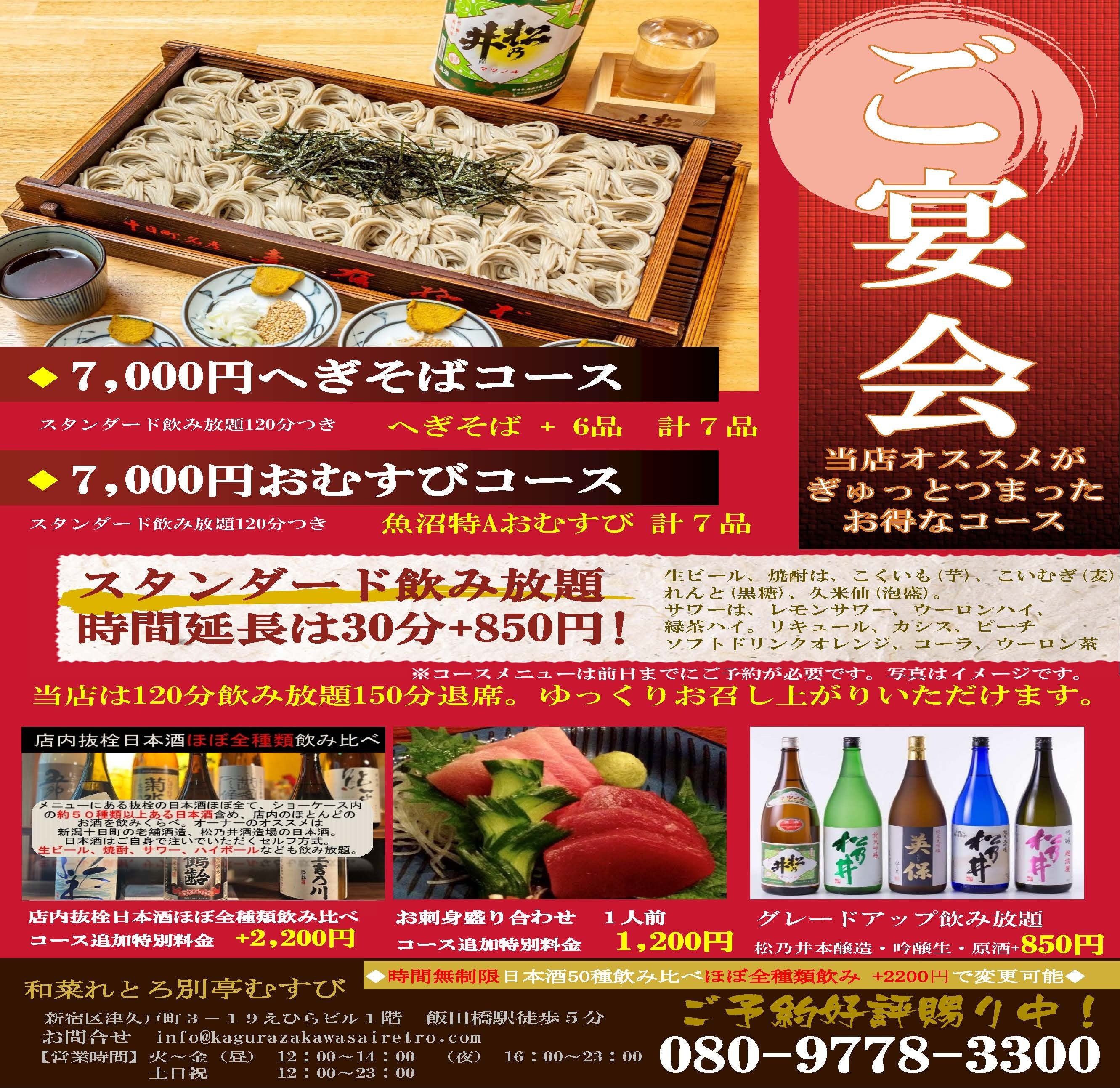 別亭むすび:080-9778-3300(東京都新宿区津久戸町3-19 えひらビル1階)