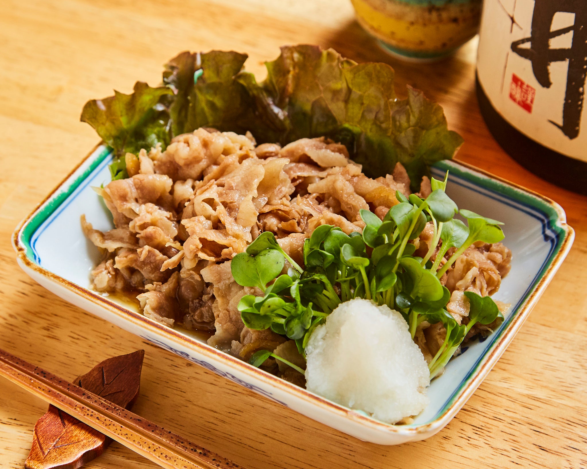 越後妻有地域で生産されるブランド豚「妻有ポーク」は、抗生物質を使わずに健康的に育てられ、脂身は人肌でも溶けるほどの繊細さ。口に含めば、脂の甘みと肉本来の旨みが一体となり、しつこさを感じさせない上質な味わいです。さっぱりとした塩味にブラックペッパーは相性◎、ゴボウとシラタキがアクセントになった塩豚煮は当店オリジナルメニューです。
