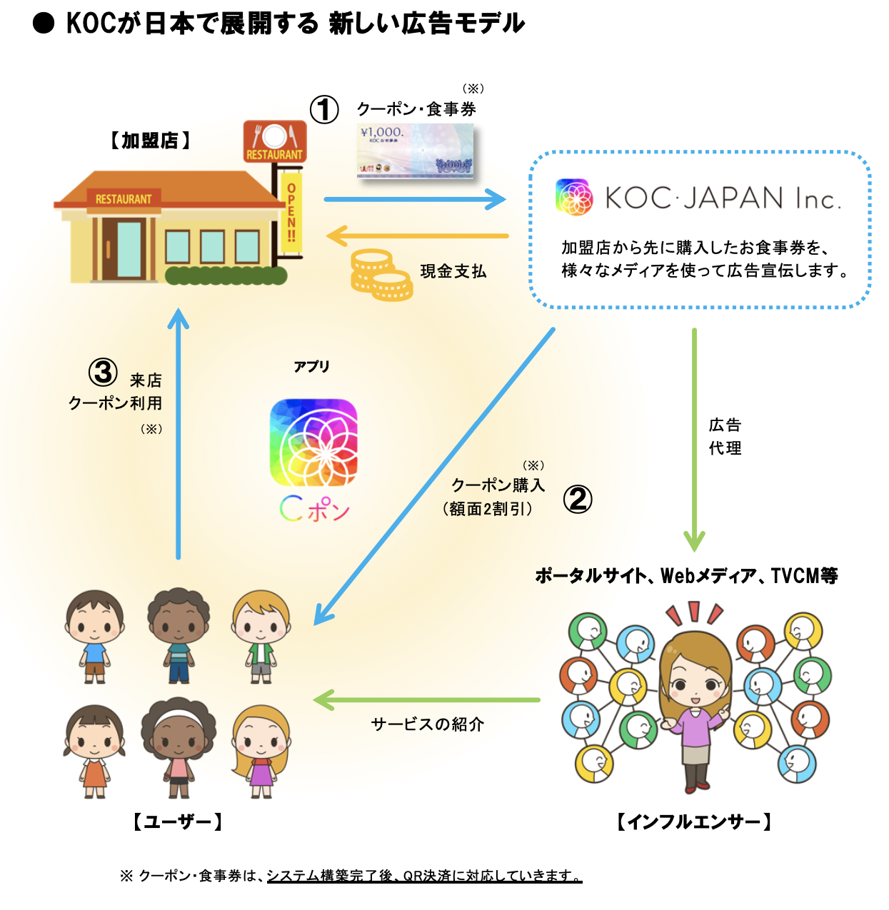 KOC独自の人脈を活かしたインフルエンサーマーケティング等により、登録者は今後増加する予定です。また、インフルエンサー側も投稿することが飲食店を助けることにつながります。
