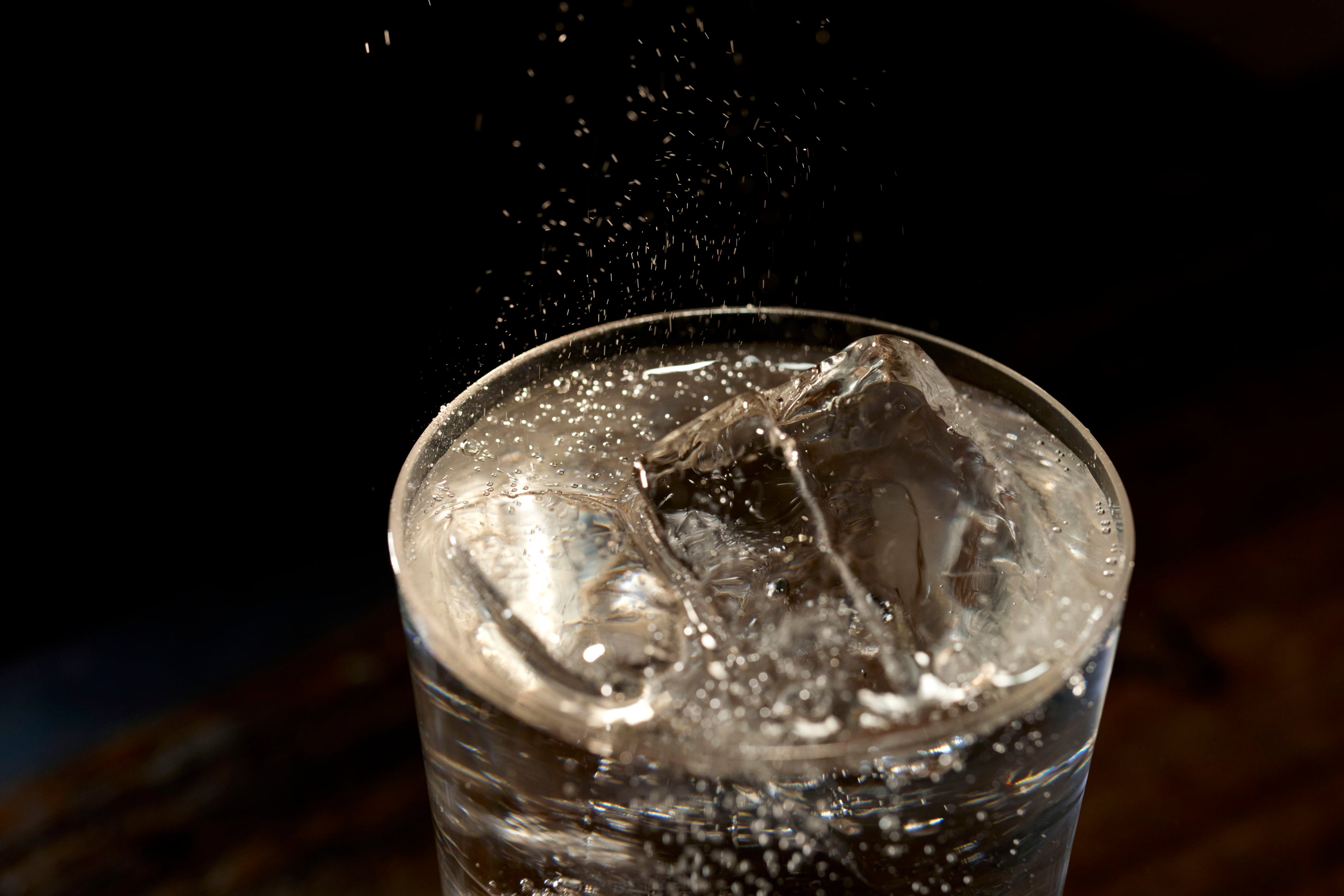 ③トニックウォーターを1対4 (120ml) の比率で注ぐ。