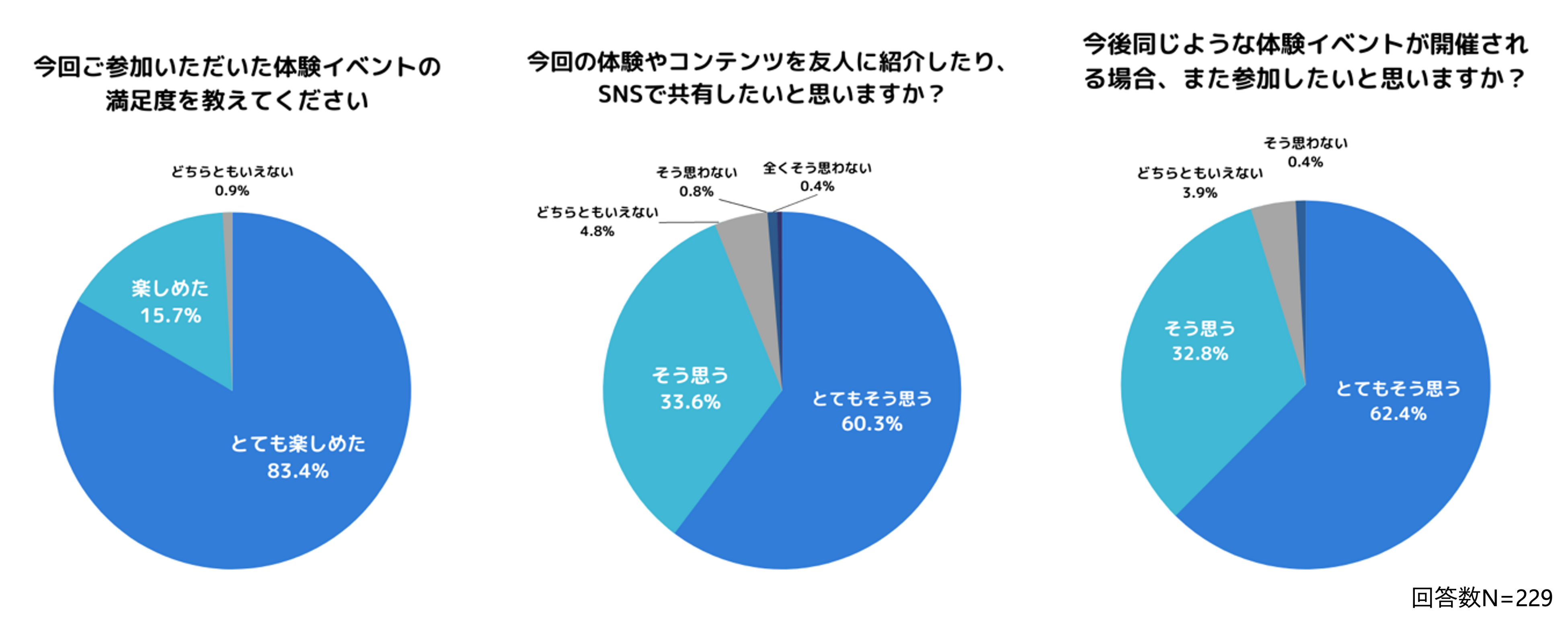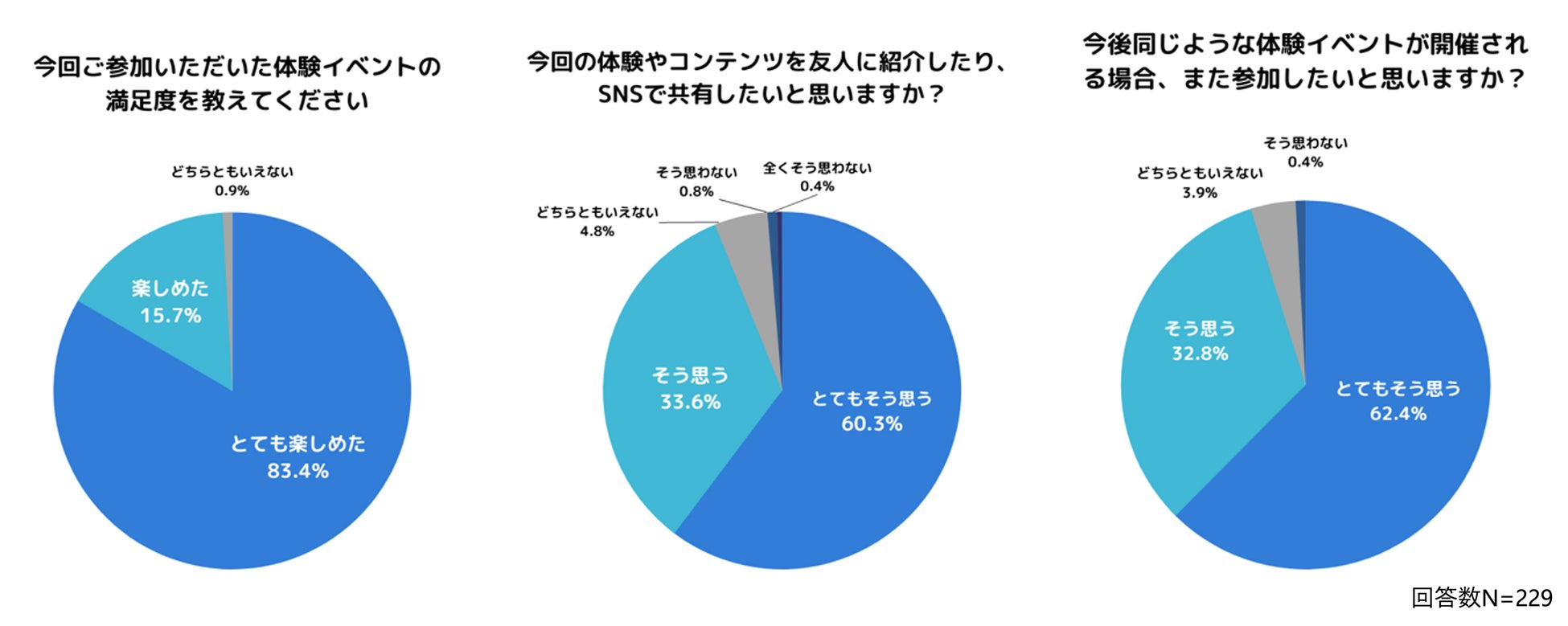 大半の参加者が「イベントを楽しめた」と回答(※3)、「コンテンツを友人に紹介したりSNSで共有したい」と回答した方も9割以上となりました(※4)。