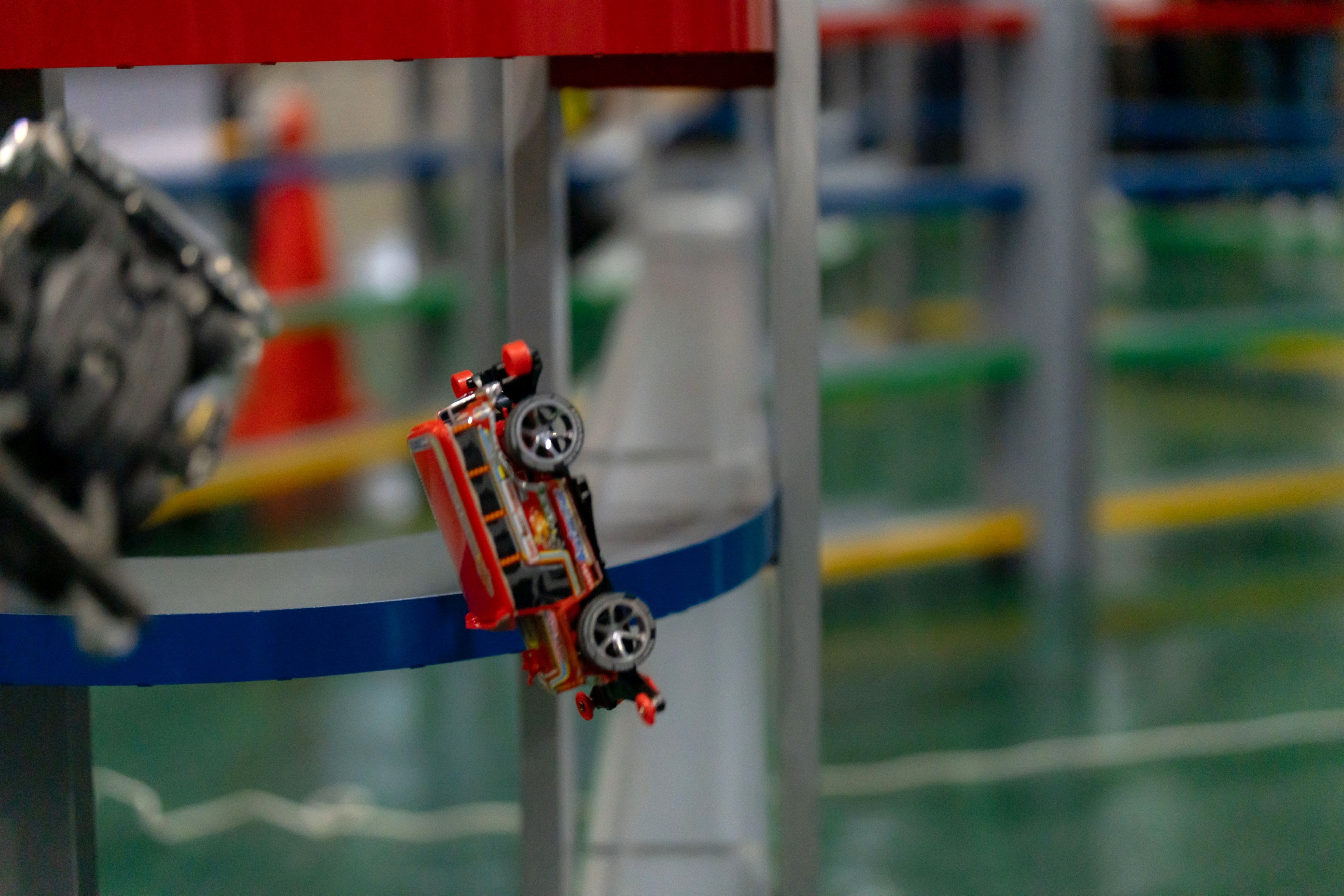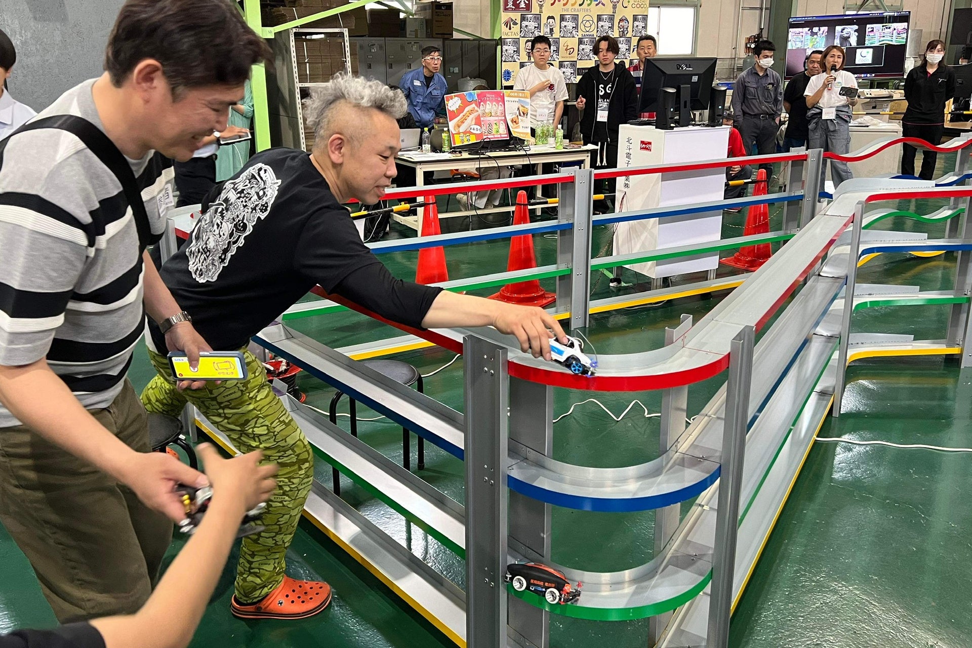 今回の大阪工業大学カップでは、モノづくりの技術者と大学がタッグを組み、ミニ四駆という「遊び」を通して、製造業の楽しさや技術力を発信することが狙いです。町工場の職人が製作した既存のコースを、大阪工業大学工学部機械工学科とロボティクス&デザイン工学部ロボット工学科の学生たちがプログラミングを駆使して魔改造。難易度の高いギミック満載のコースで、出場者を迎え撃ちます。この魔改造コースは、7月に開催される大阪・関西万博カップでも使用予定です。