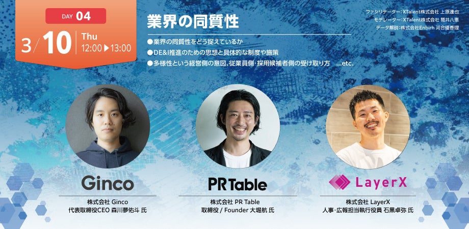 また、国際女性デーを機にXTalent株式会社が主催するイベント「withwork week @国際女性デー #キャリアとライフはトレードオフじゃない」のうち、3月10日開催の「業界の同質性」セッションに取締役/Founderの大堀航が登壇します。