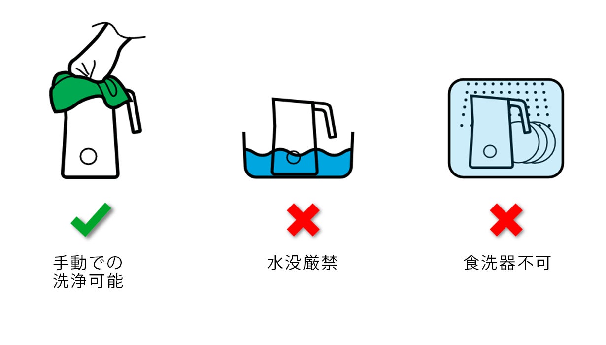 底面の電極部分に水が触れると故障の原因になりますので、水没させたり、食洗器で洗浄するような行為はやめてください。